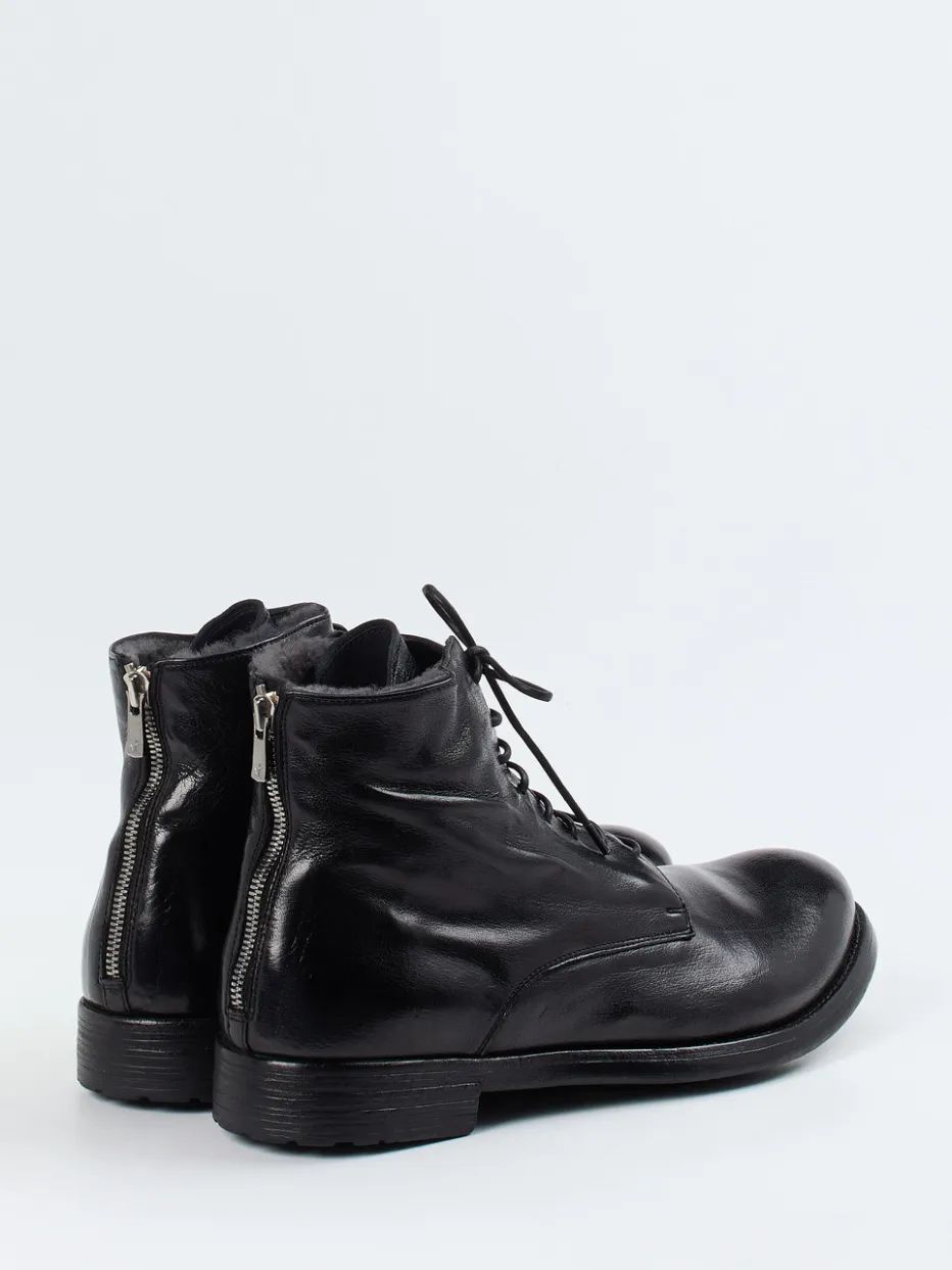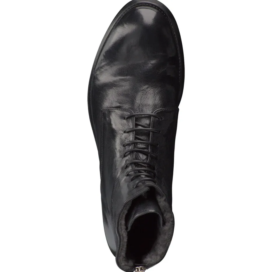 Stilsicher durch die kalte Jahreszeit.Officine Creative präsentiert mit diesen Schnürboots ein edles Herrenmodell für Herbst und Winter. Wenn urbaner Alltag und niedrige Temperaturen aufeinandertreffen, liefern diese Boots Komfort und Stil. Gefertigt aus schwarzem Büffelleder mit dezenter Glanzoptik vereinen sie klassische Silhouette mit funktionalem Detail: Der silberfarbene Reißverschluss an der Ferse ergänzt die individuelle Schnürung und ermöglicht bequemes An- und Ausziehen. Das innenliegende Lammfellfutter sorgt für wohlige Wärme, während die profilierte Gummisohle sicheren Halt bietet. Minimalistische Linien und hochwertige Materialien unterstreichen den Trend zu „Quiet Luxury“. Wärmender Komfort mit handwerklichem Anspruch – typisch Officine Creative.