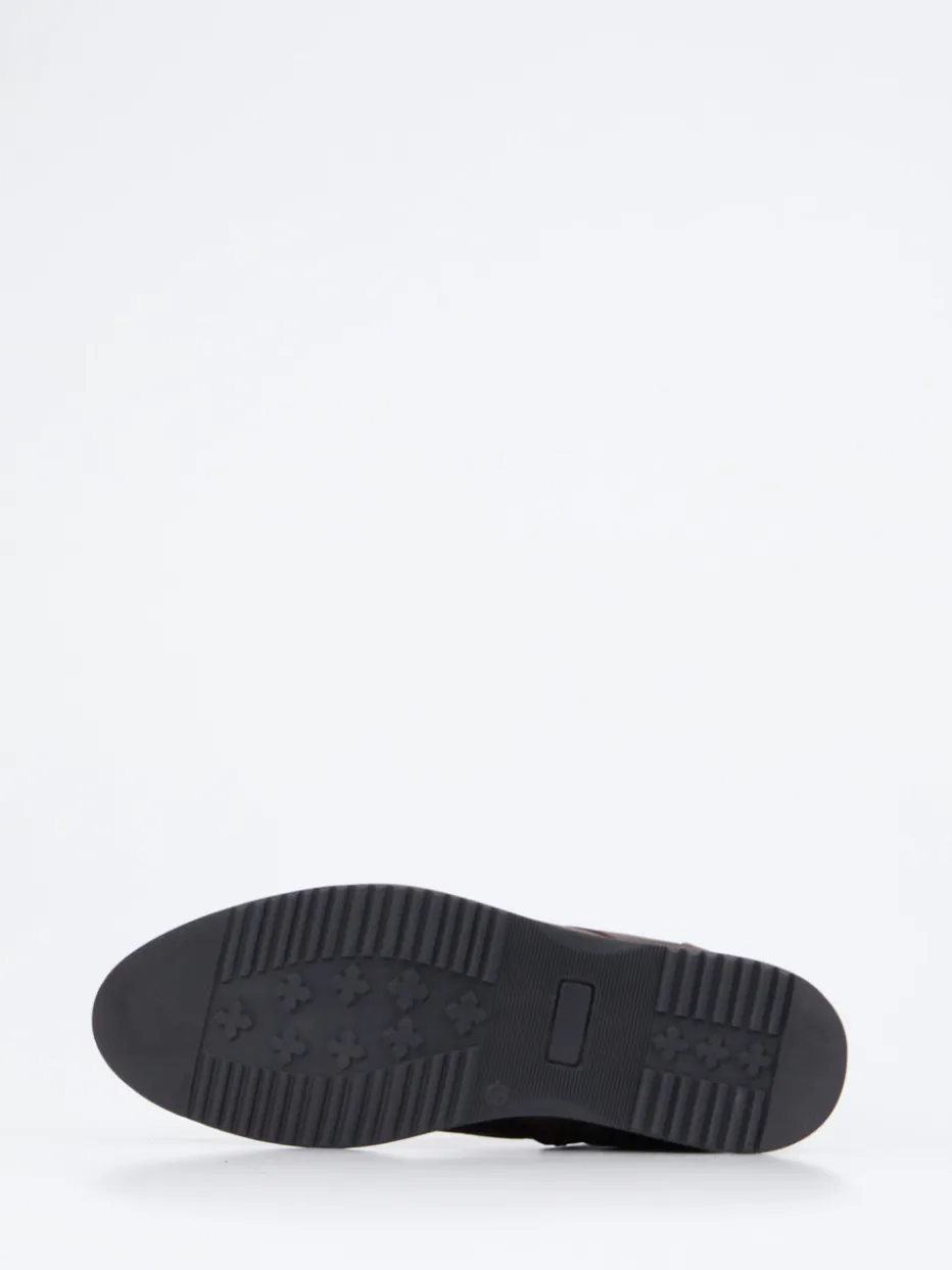 Für den Einsatz bei wechselhaftem Herbstwetter bieten diese Boots aus dunkelbraunem, matt strukturiertem Fettleder höchsten Tragekomfort. Innen schützt ein weiches Lammfellfutter vor Kälte, während der praktische Reißverschluss das An- und Ausziehen erleichtert. Das klassische, maskuline Design wird durch messingfarbene Metallösen, cognacfarbene Kontrastnähte an der Sohle und eine schwarze Gummiprofilsohle akzentuiert. Ideal zu Jeans und Wolljacke für einen sicheren, urban-geerdeten Stil im Utility Core-Trend.