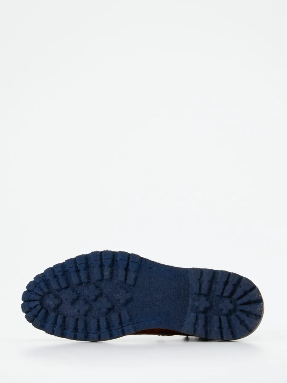 Krokogeprägtes Leder trifft auf changierenden Glanz: Diese Schnürboots vereinen markantes Design mit outdoorfähiger Funktionalität.