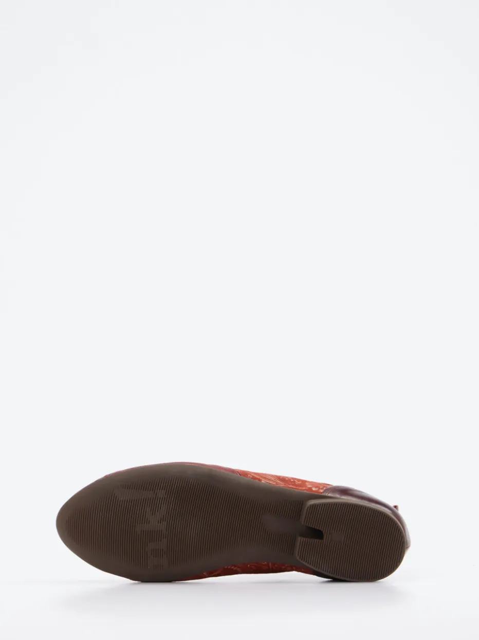 Stilvoll durch Herbst und Winter.Die Marke Think präsentiert diese stilgerechten Damen-Schnürboots mit charaktervollem Design. Ideal für entspannte Alltagsmomente oder modische Spaziergänge: Die Schnürboots bestehen aus geprägtem Leder, ergänzt durch lackierte sowie textile Details im floralen Paisley-Muster. Dunkelrote und rotbraune Nuancen ergeben zusammen mit bronzefarbenen Ösen einen ausdrucksstarken Look. Die schmal zulaufende Form mit knöchelhohem Schaft und Zuglasche betont den Boho-Charakter, während die profilierte Gummisohle sicheren Tritt gewährleistet. Als Teil des „Pattern Revival“-Trends lassen sich die Boots ideal mit unifarbenen Herbstoutfits oder Boho-Schals kombinieren. Verbindet Komforttypik der Marke mit detailreicher Vintage-Ästhetik.
