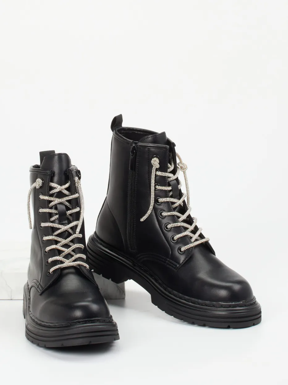CAFèNOIR vereint glattes schwarzes Leder mit glitzernden Schnürsenkeln zu einem ausdrucksstarken Streetstyle-Boot. Die profilierte Gummisohle sorgt dabei für urbanen Komfort.