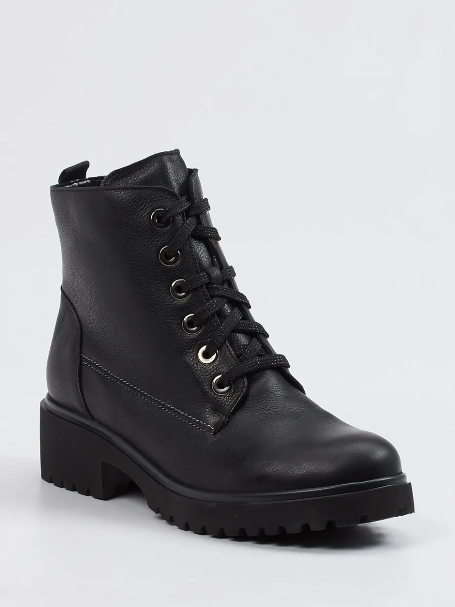 Der robuste Schnürboot überzeugt mit schwarzem, genarbtem Kalbleder, ergonomischer Passform in Weite H und einem komfortablen Innenreißverschluss.