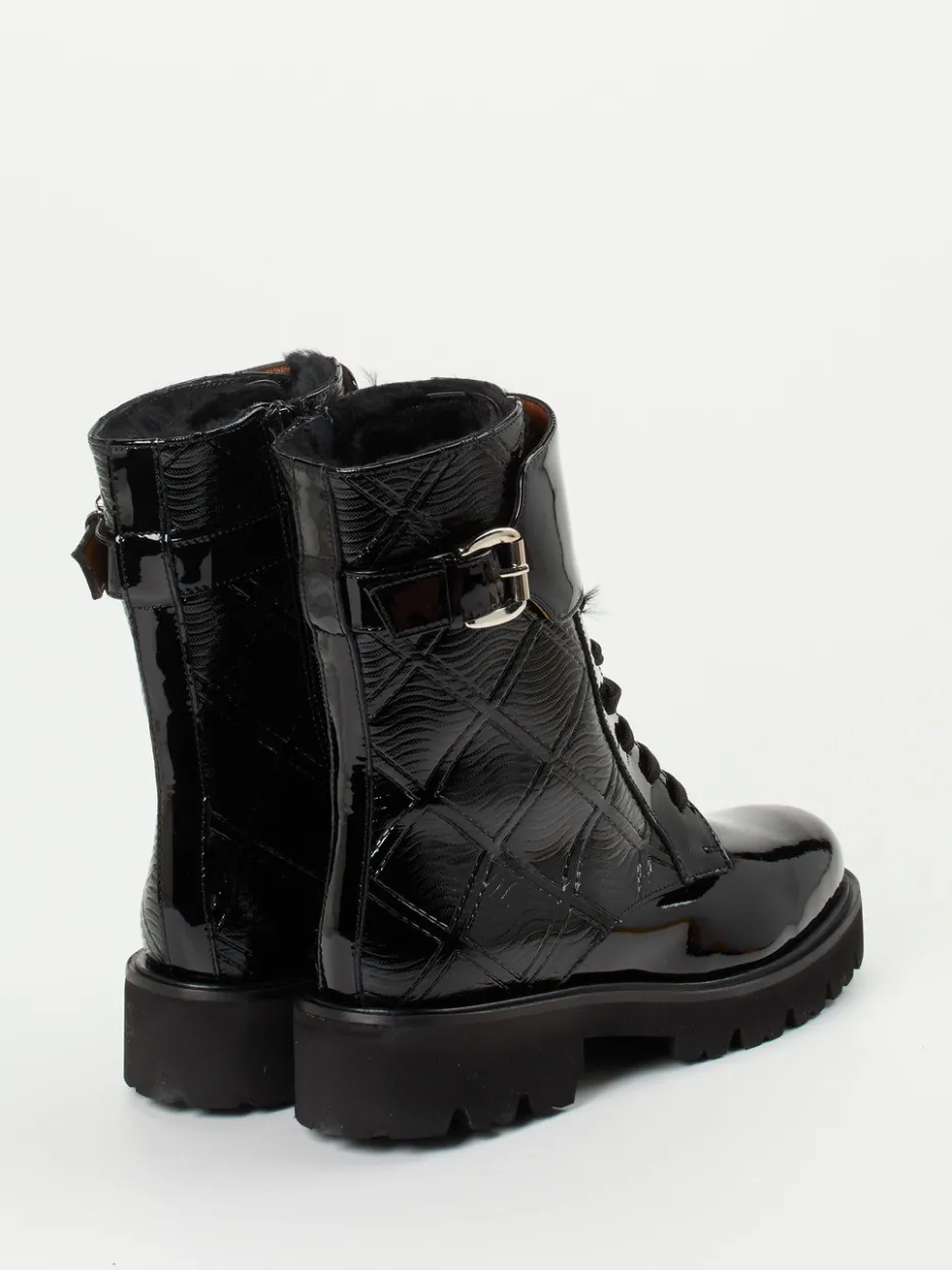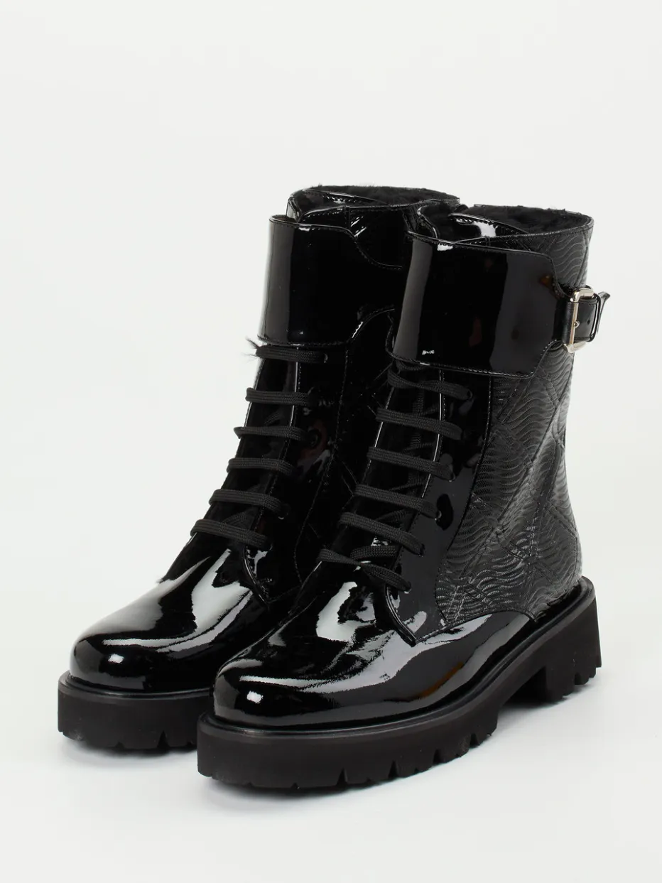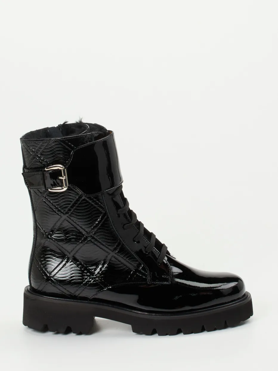 Diese damen Schnürstiefelette verbindet glänzendes Lackleder mit Steppstruktur und Lammfellfutter – stilvoll durch die kalte Saison. Funktionale Details treffen auf herbstlichen Trendausdruck.