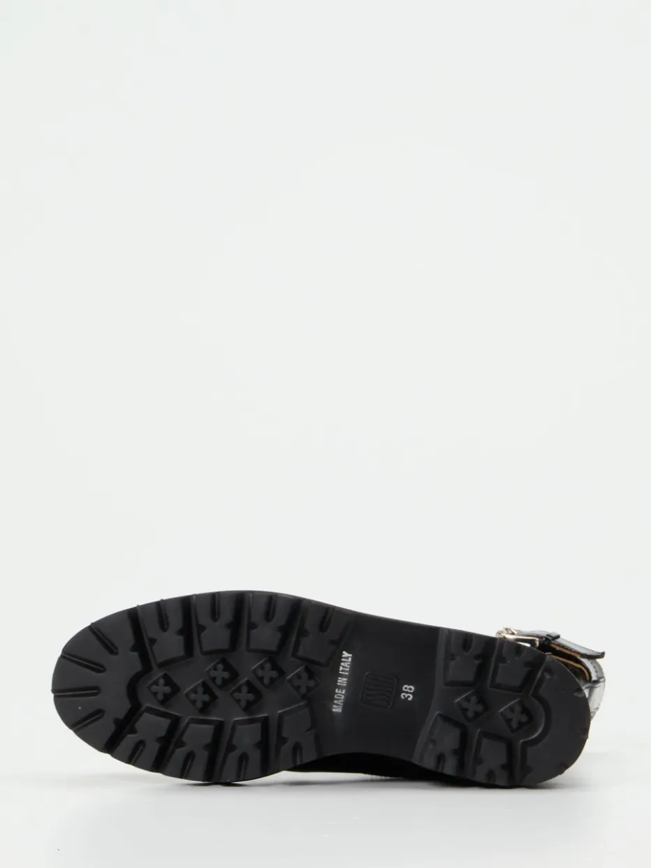 Glanz mit Komfort für Herbsttage.Mannori präsentiert eine Schnürstiefelette aus der Kategorie Damen-Stiefeletten. An kalten Tagen bietet diese knöchelhohe Stiefelette mit glänzendem schwarzem Lackleder und kuscheligem Lammfellfutter modischen Schutz. Die gesteppte Oberfläche, der seitliche Reißverschluss sowie die markante Zierschnalle in Silber setzen Akzente. Die stark profilierte Leichtzellsohle sorgt für Bodenhaftung und Bequemlichkeit im Alltag. Inspiriert vom Streetwear-Stil und dem Utility-Trend lässt sich das Modell perfekt zu Monochromlooks oder glänzenden Akzenten kombinieren. Ein stylischer Begleiter mit wettertauglicher Funktion und markentypischer Detailverliebtheit.