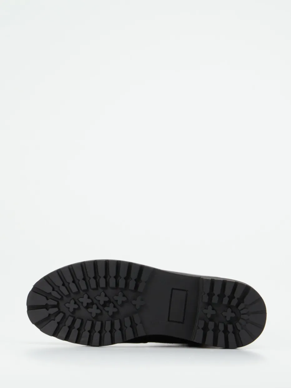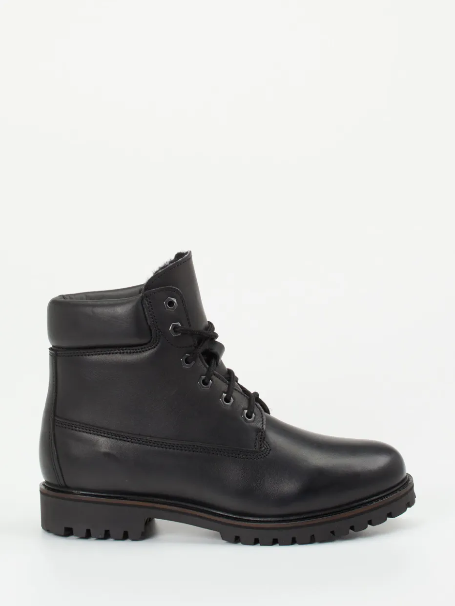 Funktionalität, puristisch interpretiert.Ralph Harrison Country präsentiert mit diesen Schnürboots ein Modell für Herren, das Robustheit und Minimalismus stilvoll vereint. Ob Stadtbummel bei Wind, Spaziergänge im Park oder auf Herbsttour – das tiefschwarze Lammleder mit mattierter Oberfläche überzeugt durch seine strapazierfähige Qualität. Ein weich gepolsterter Schaftrand und ein warmes Innenfutter aus Lammfell sorgen für spürbaren Komfort, während die kräftig profilierte Gummisohle mit Kontrastrand verlässlichen Halt bietet. Die klar konturierte Silhouette mit Ton-in-Ton-Nähten und schwarzen Metallösen greift zeitgemäße Quiet-Utility-Tendenzen auf. Ein Schuh für urban Aktive – mit souveräner Markenqualität und durchdachtem Design.
