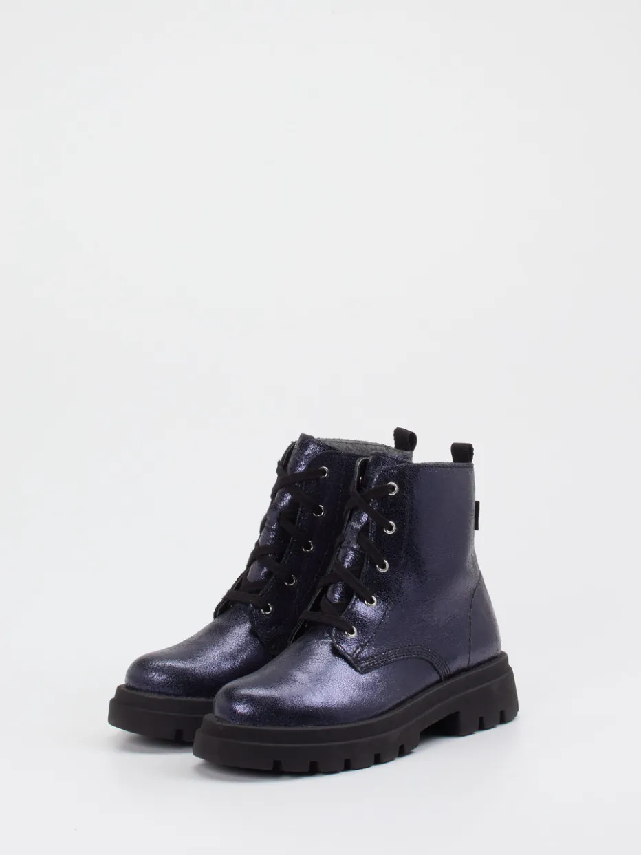 Expressiver Look für jeden Tag.Richter präsentiert trendige Kinder-Schnürboots im Combat-Design. Mit ihrer glänzenden Metallic-Oberfläche in Dunkelblau und schwarzer Kontrast-Schnürung sind diese Boots ein stilvoller Begleiter für urbane Alltagsabenteuer. Das Material aus Metallic-Leder wirkt durch die glatte, leicht strukturierte Textur besonders edel, während das weiche Fleecefutter für Komfort sorgt. Seitlicher Reißverschluss und profilierte Chunky-Sohle unterstreichen den Utility-Charakter. Modisch inspiriert durch Streetwear und Metallic-Trends der Saison. Ein Highlight für ausdrucksstarke Styles mit funktionalem Anspruch – kindgerecht interpretiert von Richter.
