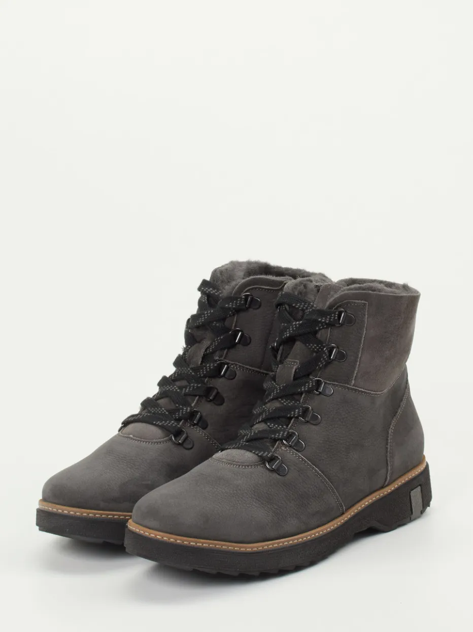 Funktion trifft Komfort an kalten Tagen.Waldläufer setzt bei dieser Damen-Stiefelette auf Funktionalität und Bequemlichkeit. Ob beim Spaziergang durch frostige Landschaften oder im winterlichen Alltag – das dick gefütterte Modell bietet dank Nubukleder mit samtig-matter Oberfläche und warmer Innenausstattung aus Kunstfell zuverlässigen Schutz. Die anthrazitgraue Farbgebung mit Kontrastnähten, die knöchelhohe Form mit zweifarbiger Schnürung und Reißverschluss sowie eine profilierte Gummisohle sorgen für festen Halt und angenehmen Tragekomfort. Elemente aus dem Utilitywear- und Gorpcore-Stil machen das Paar auch gestalterisch trendbewusst. Kombiniert mit Thermo-Leggings ergibt sich ein alltagsnaher Winterlook. Waldläufer-typische Passform trifft auf durchdachte Funktion für frostige Bedingungen.