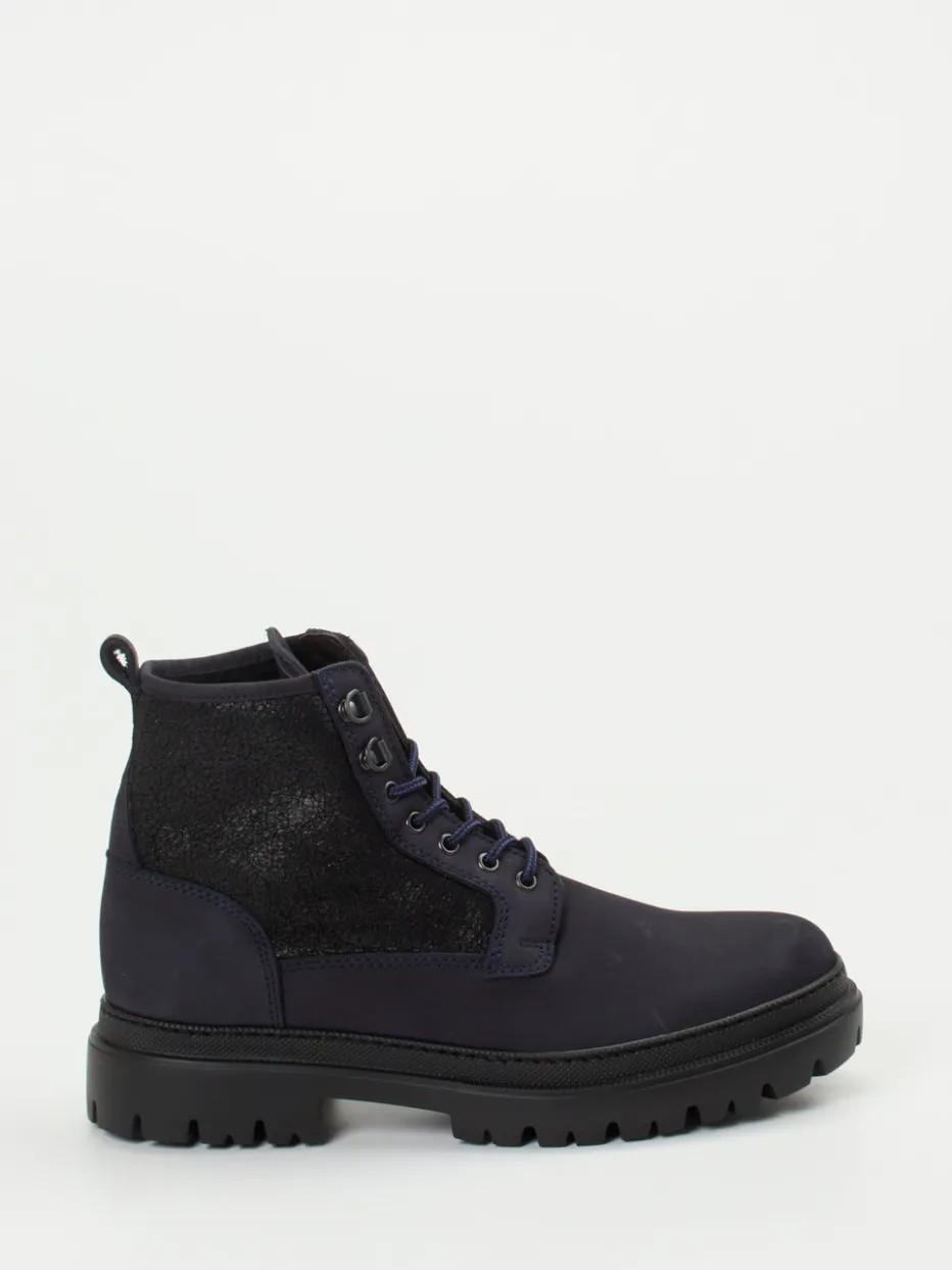 Stilvoll durch die kühle Jahreszeit.Konstantin Starke interpretiert klassische Herren-Stiefeletten im Utility-Stil neu. Ob beim Spaziergang durch die Stadt oder im Gelände – dieser dunkelblaue Schnürboot aus weichem Nubukleder mit samtig-matter Oberfläche verbindet Komfort mit Funktionalität. Schwarz strukturierte Ledereinsätze definieren den Einstieg, während Metallösen und Ton-in-Ton-Nähte das minimalistische Design unterstreichen. Die hochgezogene Gummisohle mit markantem Profil verleiht Grip und ein sicheres Laufgefühl. Inspiriert von Workwear-Trends, passt der Schuh perfekt zu Thermojeans oder funktionaler Outdoorjacke. Urbaner Komfort mit kraftvoller Ausstrahlung – ein Allrounder mit Substanz.