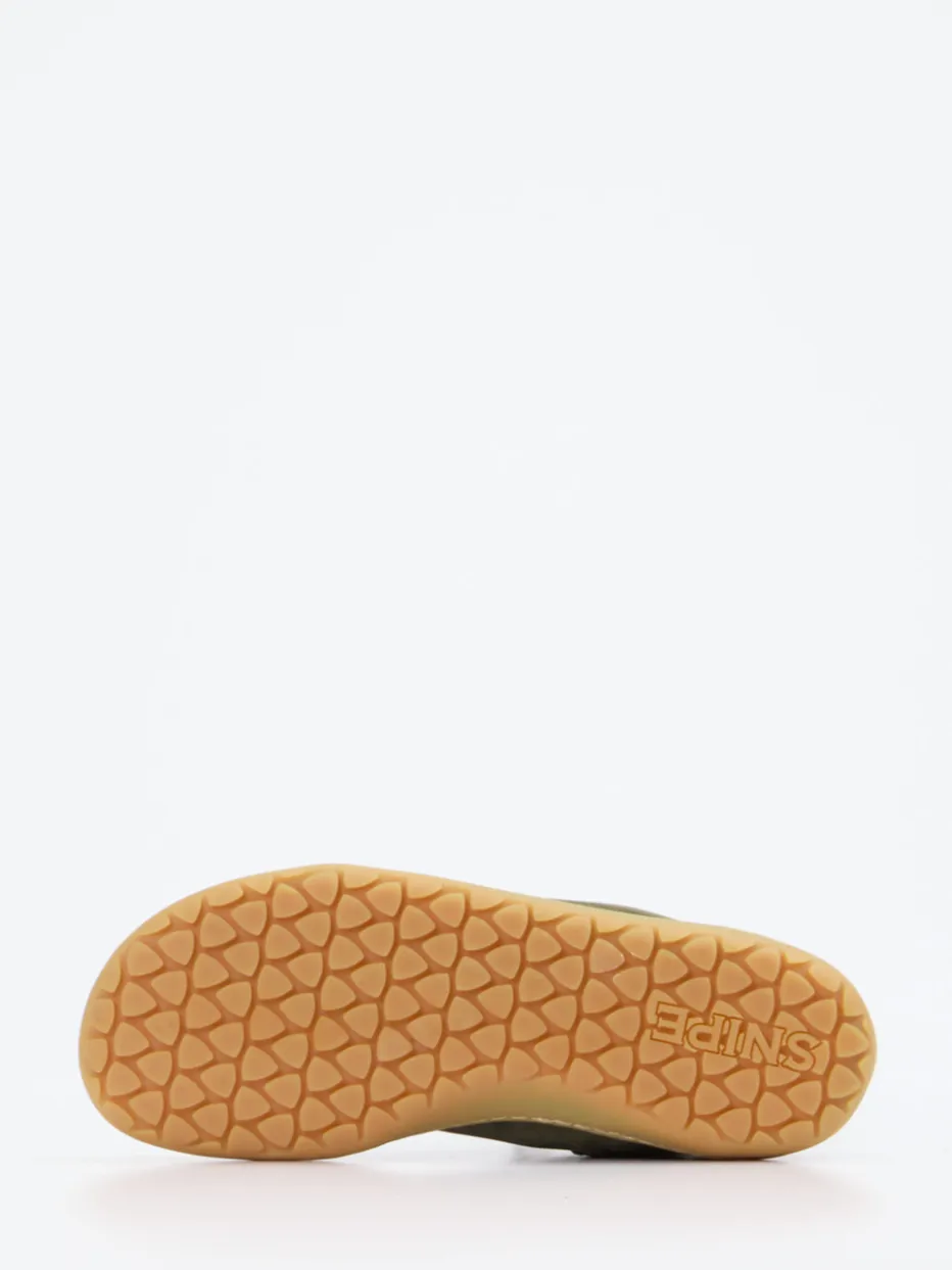 Ideal für entspannte Herbsttage in der Stadt: Das samtig angeschliffene Nubukleder in Olivgrün trifft auf ein weiches Microfaserfutter und eine flexible, recycelbare Gummisohle. Die schmale, konische Form unterstreicht den reduzierten Charakter, während der seitliche Reißverschluss und eine dezente Zuglasche praktischen Komfort bieten. Ton-in-Ton-Nähte und ein Logo-Label setzen zurückhaltende Akzente. Ein Modell im Spirit von Quiet Luxury und Natural Tones – ideal für Casual-Outfits mit Wollmantel oder Umhängetasche.