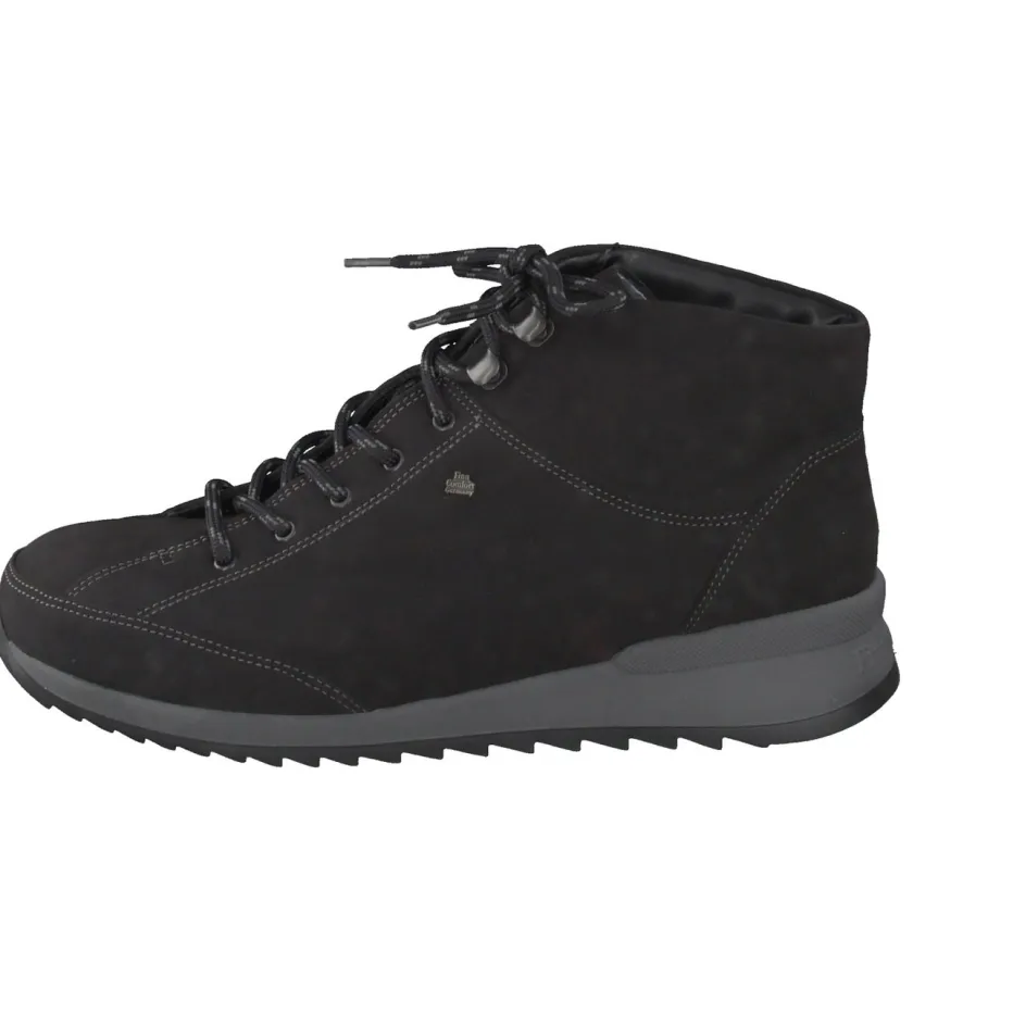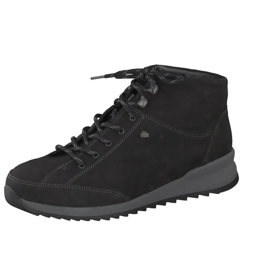 Komfort trifft minimalistische Funktion.Die Marke Finn Comfort zeigt mit diesen Schnürboots aus der Kategorie Komfort-Winterboots ihr Gespür für stilsichere Alltagstauglichkeit. Für kalte Tage und lange Wege gemacht: Das samtig angeschliffene Nubukleder in tiefem Schwarz bringt zusammen mit dem wärmenden Lammfellfutter und dem gepolsterten Schaftrand zuverlässige Funktion in minimalistischer Ästhetik. Kontrastnähte, Ton-in-Ton-Schnürung und Ösen mit Bergsteiger-Charakter betonen das robuste Design. Dank der ergonomischen Gummisohle mit leichtem Absatz ist ein dynamisches Laufgefühl garantiert. Im Trendfeld „Quiet Luxury“ überzeugt das Modell als urbaner Allrounder. Spürbarer Komfort und reduzierte Optik – typisch Finn Comfort.
