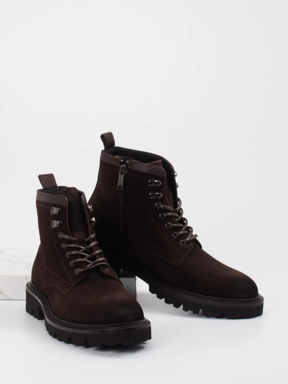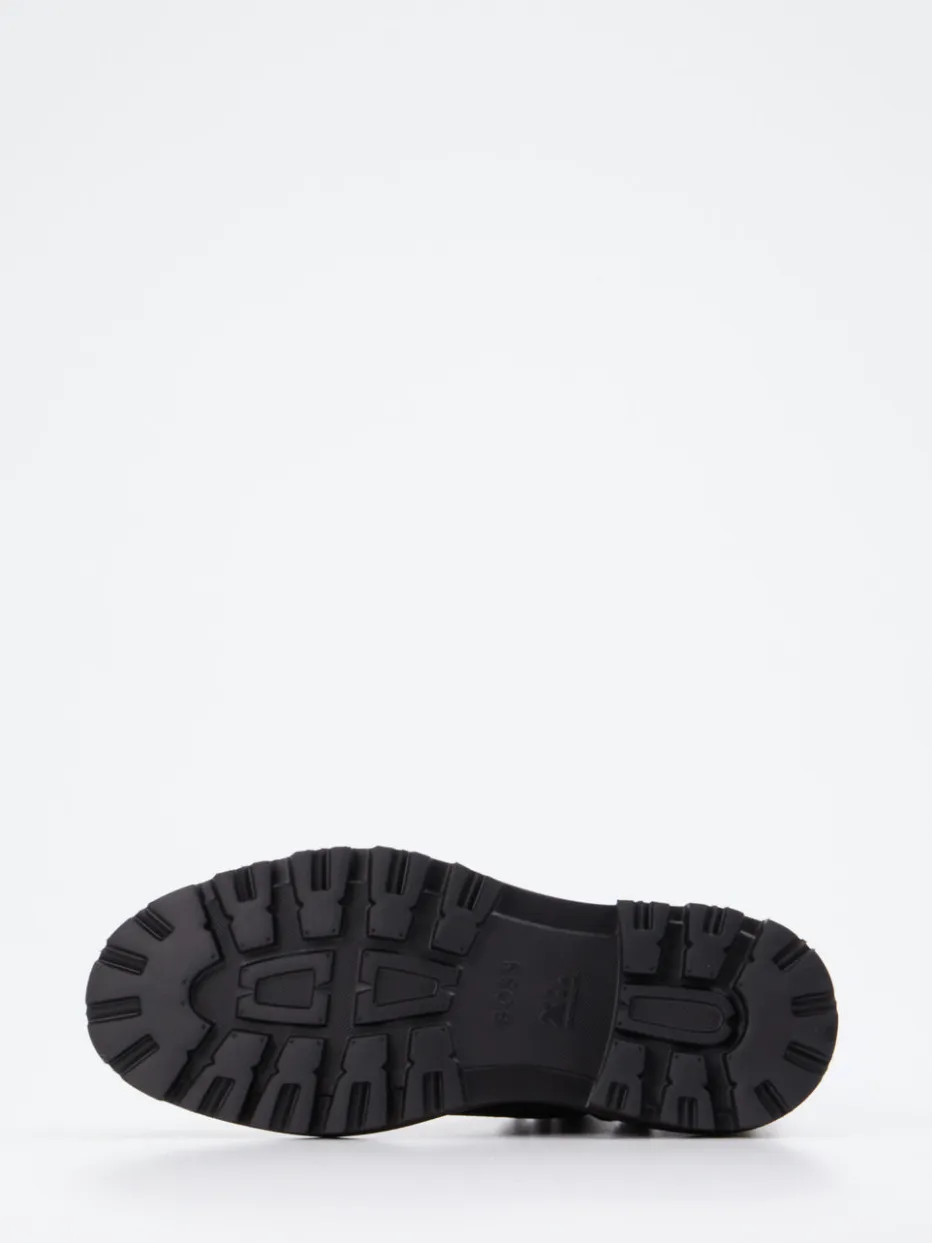 Diese Herrenboots von Boss vereinen robustes Veloursleder mit klarer Linienführung und funktionalem Komfort. Ein stilvoller Begleiter mit urbaner Utility-Anmutung.