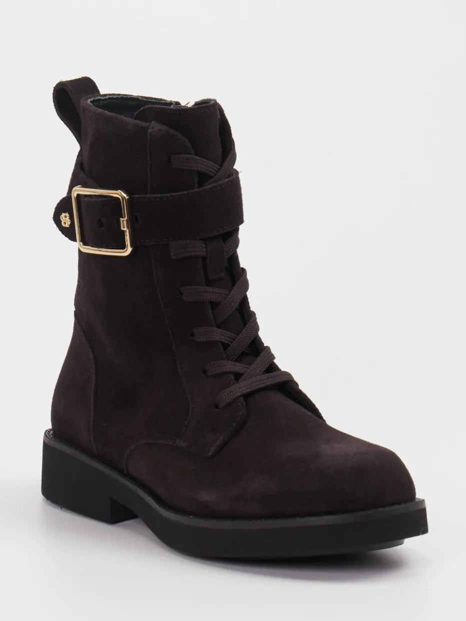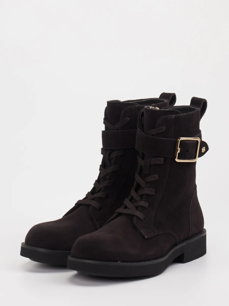 Stilvoll gerüstet für urbane Abenteuer. Die Marke Boss präsentiert robuste Damen-Schnürboots aus Veloursleder – ideal für Herbst und Winter. Das dunkelbraune Obermaterial mit matter Oberfläche und Ton-in-Ton-Nähten sorgt für einen edlen Look, während goldfarbene Hardware und seitlicher Reißverschluss funktionale Akzente setzen. Die klassische Form mit profilierter Gummisohle unterstützt den modischen Military-Einfluss und ergänzt minimalistische Looks mit urbaner Haltung. Besonders geeignet für den Alltag oder abendliche Anlässe mit Stilappeal. Kombiniert mit einer Lederjacke entsteht ein zeitgemäßes Ensemble. Markentypischer Vorteil: dezenter Luxus trifft auf klaren Designanspruch.