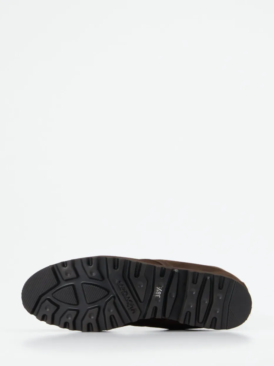 Ideal für den herbstlichen Stadtbummel oder Spaziergänge im Grünen: Das hochwertig verarbeitete Veloursleder in Maronenbraun wirkt durch seine matte Oberfläche besonders edel. Feine Ton-in-Ton-Nähte, eine rückseitige Zuglasche und die harmonisch verlaufende Schnürung unterstreichen das minimalistische Workwear-Design. Innen sorgt weiches Lammfellfutter für Wärme und Komfort. Die markant profilierte Vibram-Gummisohle unterstützt sichere Schritte auf wechselndem Terrain. Ein Modell im Zeichen von „Quiet Luxury“ und zurückhaltender Funktionalität.