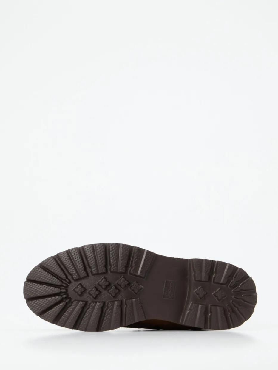 Ideal für kalte und nasse Tage schützt das Veloursleder durch seine samtige Struktur und die integrierte SiouxTEX-Membran zuverlässig vor Wind und Feuchtigkeit. Innen sorgt ein flauschiges Lammfellfutter für spürbare Wärme. Die mittelbraune Farbe wird durch silberfarbene Metallösen und tonale Nähte stilvoll ergänzt. Der seitliche Zipper erleichtert das Anziehen, die profilierte Gummisohle bietet festen Grip auf rutschigen Untergründen. Die klassische Silhouette mit gepolstertem Schaft passt ideal zum Minimalismus-Trend und lässt sich vielseitig zu Naturtönen kombinieren.