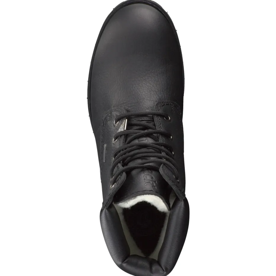 Panama Jack präsentiert diese markanten Schnürboots als Teil seiner Herbst/Winter-Kollektion. Ob Stadtspaziergang bei Nieselwetter oder Wochenend-Ausflug ins Grüne – das schwarze Waterproof-Kalbleder mit genarbter Oberfläche schützt zuverlässig bei Wind und Nässe. Innen sorgt ein helles Wollfutter für angenehme Wärme. Die knöchelhohe Silhouette mit gepolstertem Schaftrand und markanter Schnürung betont den funktionalen Charakter. Eine griffige Gummisohle mit Profil sowie dezente Logo-Prägungen unterstreichen den kernigen Outdoor-Look. Lässt sich perfekt mit Thermo-Jeans und Parka kombinieren. Verlässliche Begleiter mit kompromissloser Qualität im typischen Panama-Jack-Stil.