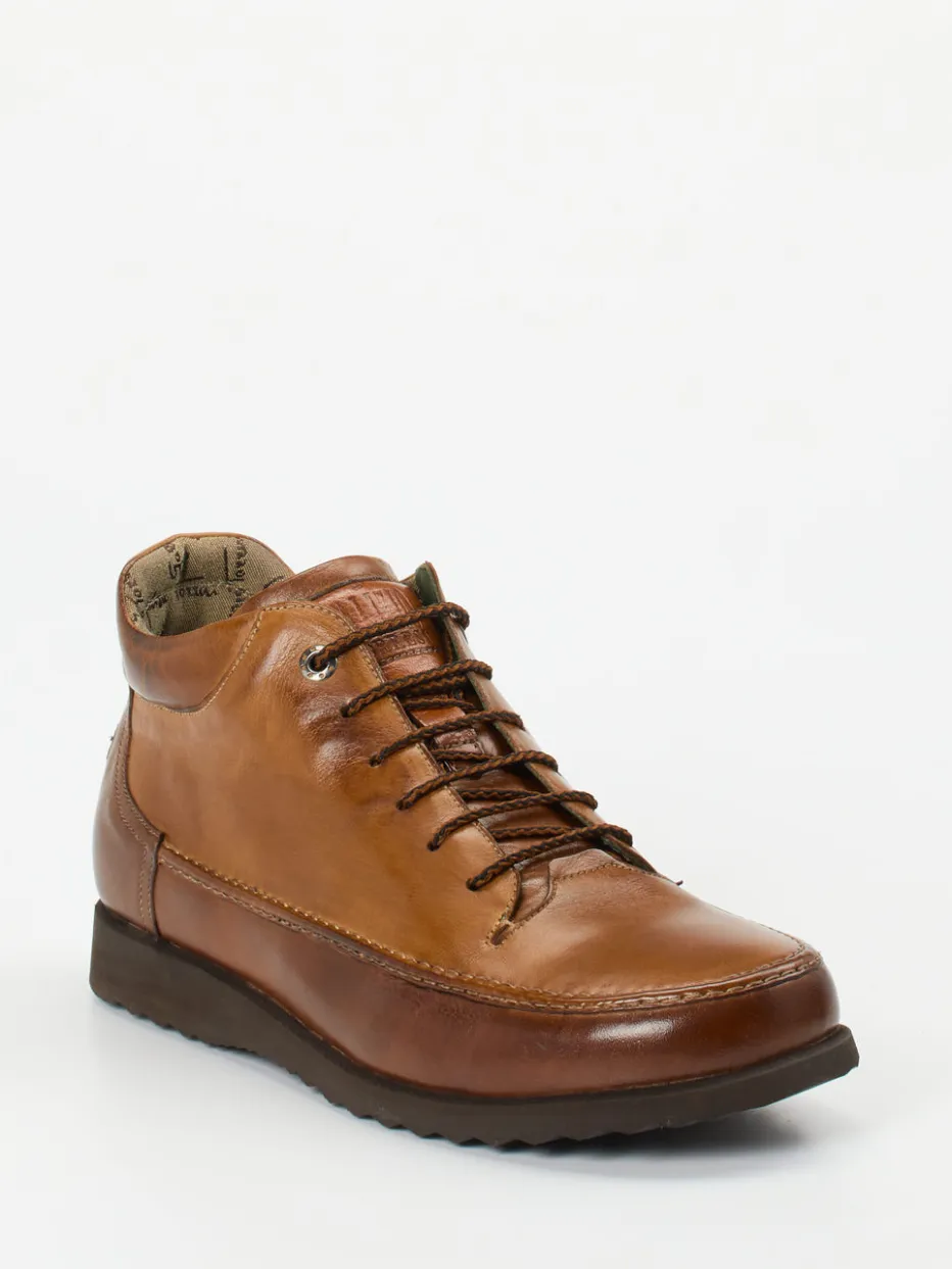 Die italienische Marke Galizio Torresi präsentiert einen knöchelhohen Schnürschuh für Herren, gefertigt aus butterweichem Kalbleder.