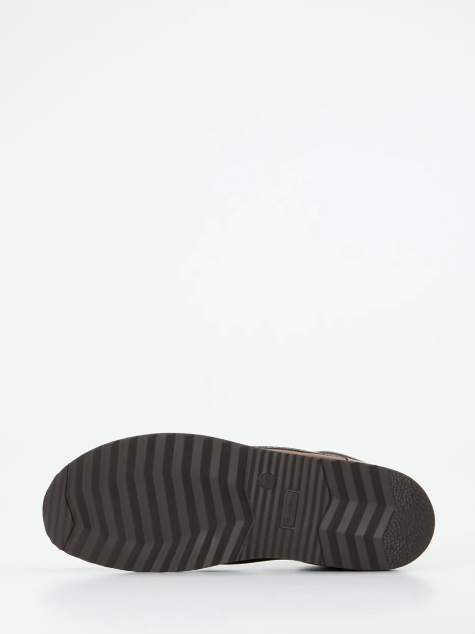 Klassischer Stil trifft auf dezente Raffinesse.Die italienische Marke Galizio Torresi präsentiert mit diesem Herren-Mid-Cut einen edlen Schnürschuh für Freizeit und Business. Ideal für den gehobenen Alltagslook überzeugt das Modell mit hochwertigem Kalbleder, glänzender Oberfläche und markanten Kontrastnähten. Die schwarz-braune Farbgebung wirkt maskulin und kombinierfreudig; das geprägte Fersenlogo und die abgerundete Form unterstreichen den eleganten Auftritt. Eine profilierte Gummisohle sowie ein weich gepolsterter Schaftrand erhöhen den Tragekomfort. Vintage-Anklänge und Quiet-Luxury-Flair machen diesen Schuh zum vielseitigen Begleiter. Perfekt zu dunkler Chino und Ledergürtel. Exquisite Lederverarbeitung und stilistische Souveränität – made by Galizio Torresi.