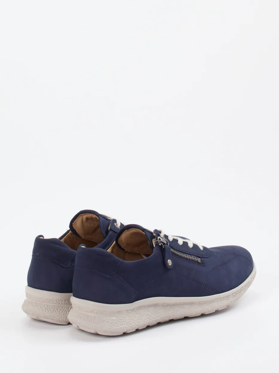 Moderner Komfort für jeden Tag.Hartjes präsentiert mit diesem Komfort-Sneaker ein stilvolles Modell im Freizeitbereich. Ideal für lange Tage auf den Beinen bietet der marineblaue Schnürschuh durch butterweiches Nubukleder mit samtiger Oberfläche und die gepolsterte Verarbeitung optimalen Tragekomfort. Der seitliche Reißverschluss erleichtert das Anziehen, während die helle Schnürung einen frischen Akzent setzt. Innen sorgt ein Lederfutter mit Dry-Clim-Einsatz für ein ausgewogenes Fußklima, ergänzt durch ein auswechselbares Kork-Fußbett. Die ultraleichte Gummisohle mit Profil gibt sicheren Halt und greift den Minimalismus-Trend stilvoll auf. Gut kombinierbar mit entspannten Casual-Looks. Komfort und unaufdringliches Design – typisch Hartjes.