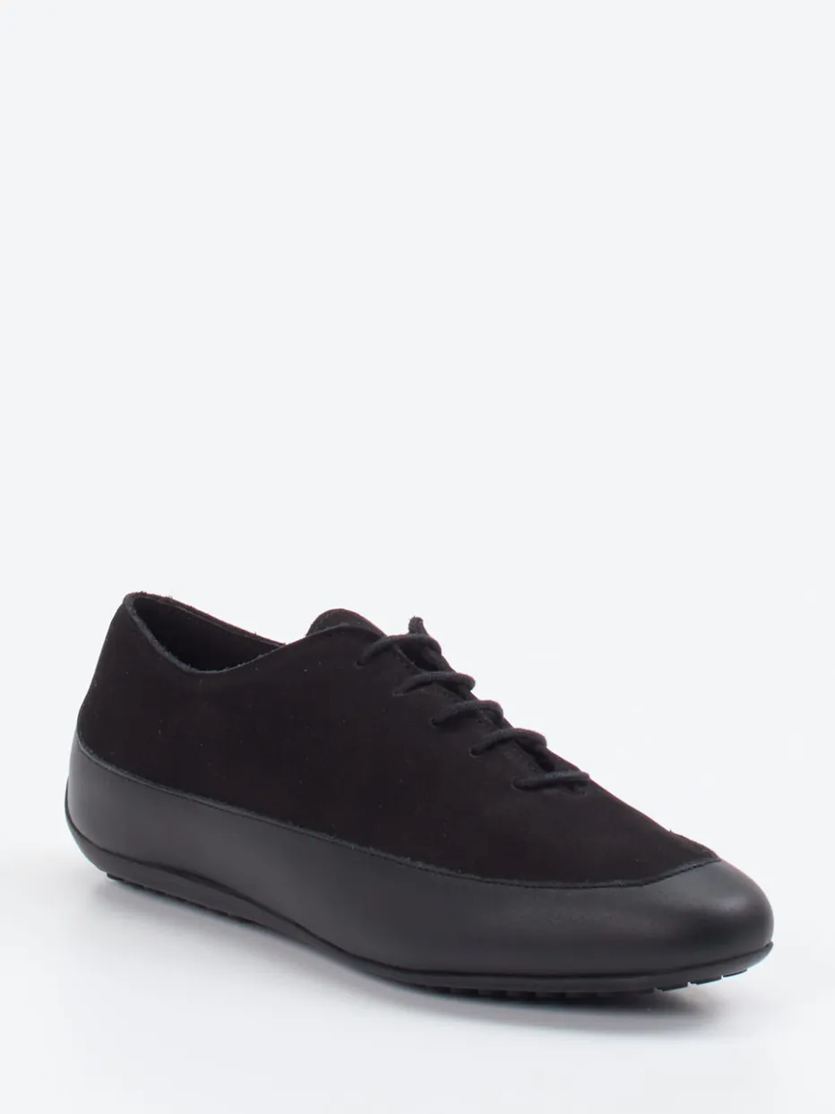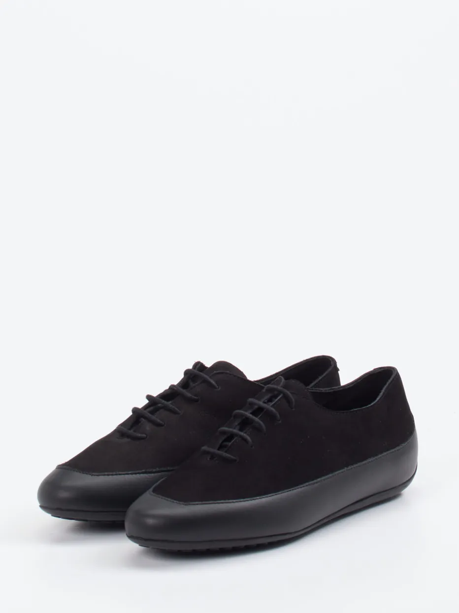 Schwarzer Purismus für urbane Looks.Mit dem Schnürschuh von Arche präsentiert sich die Premiummarke in ihrer puristischen Handschrift. Ideal für entspannte Alltagsmomente überzeugt das Modell durch hochwertiges Nubukleder mit samtiger Struktur und eingearbeitete Partien aus glattem Leder. Die matte, tiefschwarze Optik harmoniert mit einer abgerundeten Silhouette und einer dezent profilierte Gummisohle. Dank Ton-in-Ton-Schnürung und nahtloser Übergänge entsteht ein klarer, reduzierter Look, der ideal zu Monochrome-Kombinationen passt. Minimalistische Designästhetik trifft leichten Tragekomfort. Ein edler Freizeitschuh mit klarer Formensprache – typisch Arche.
