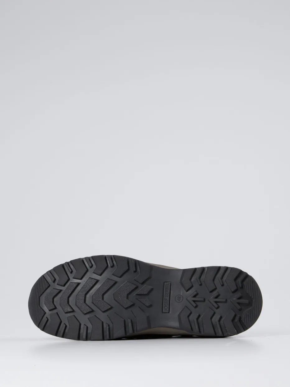 Für Aktivitäten in Stadt oder Natur bietet das samtig angeschliffene Nubukleder mit mattem Finish in Dunkelbraun eine strapazierfähige und zugleich stilvolle Basis. Kontrastnähte, verstärkte Fersenpartien sowie ein seitliches Logotag unterstreichen das funktionale Design. Das atmungsaktive Innenfutter aus Mesh und die gepolsterte Schaftpartie erhöhen den Tragekomfort. Dank robuster Gummisohle mit starkem Profil ist Trittsicherheit auch in unwegsamem Gelände gewährleistet – ideal für comfortorientierte Outdoor-Looks. Kombiniert mit Funktionshose und Jacke entsteht ein harmonisches Freizeit-Ensemble.