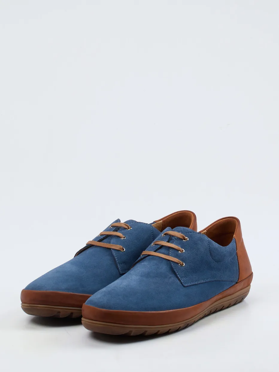 Ob beim entspannten Stadtbummel oder im smarten Büroalltag – das samtig angeschliffene Veloursleder in Jeansblau trifft auf cognacfarbenes Nubukleder und bringt dezenten Kontrast ins Spiel. Die klare Silhouette mit abgerundeter Kappe und Metallösen unterstreicht den minimalistisch-eleganten Charakter. Innen sorgt ein herausnehmbares, antibakterielles Fußbett für hohen Tragekomfort, während die profilierte Gummisohle sicheren Halt bietet. Ideal zu Chinos oder Denim kombinierbar.