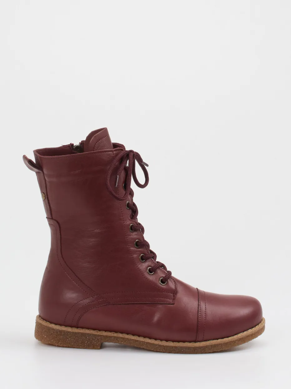 Komfort trifft Charakter.Andrea Conti präsentiert eine Damen-Stiefelette, die Vintage-Flair und Alltagstauglichkeit vereint. Für ausgedehnte Herbstspaziergänge oder lässige City-Outfits bietet diese Schnürstiefelette aus bordeauxfarbenem Kalbleder mit matter Oberfläche eine stilvolle wie funktionale Lösung. Die klassisch hochgeschlossene Silhouette wird durch eine markante Schnürung mit antikbronzenen Ösen sowie einen praktischen Innenreißverschluss ergänzt. Die griffig profilierte Gummisohle aus Naturkautschuk sorgt für zuverlässigen Halt. Charaktervolle Ton-in-Ton-Nähte und eine Fersenschlaufe setzen dezente Akzente. Stilistisch orientiert sich das Modell am Heritage Revival mit Utility-Charme. Ein überzeugender Begleiter für vielseitige Casual-Looks mit elegantem Komfortanspruch.