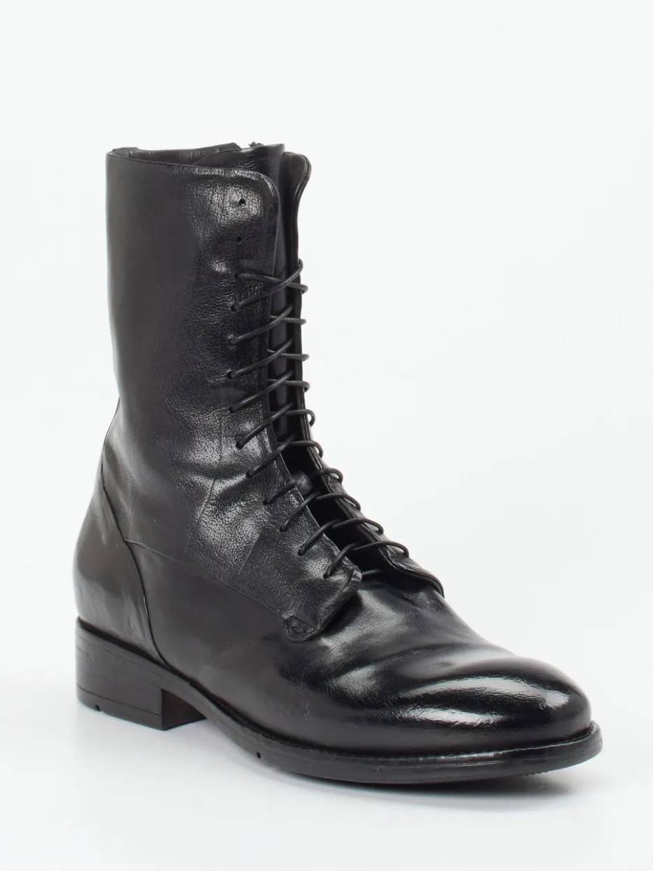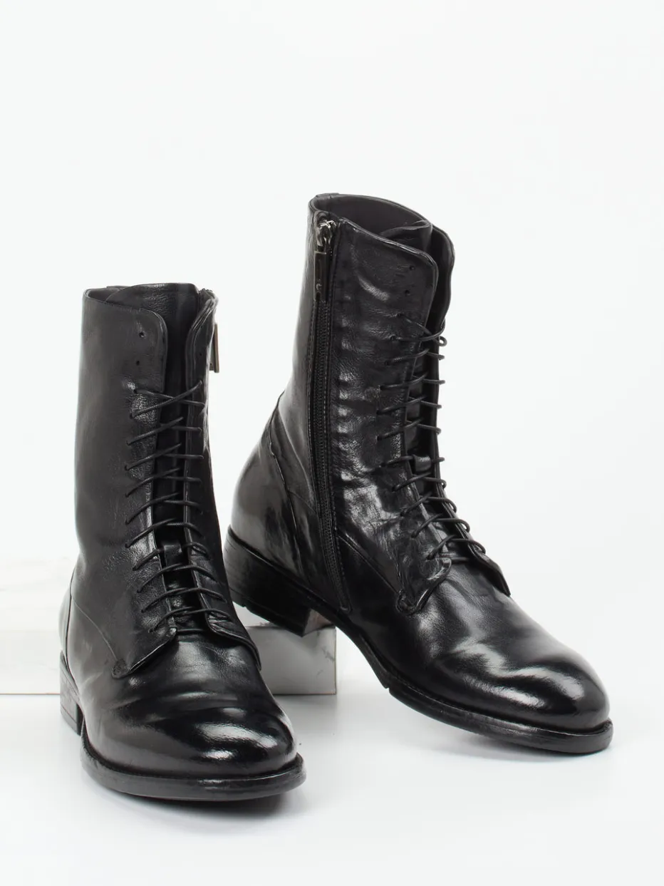 Klassik trifft auf Understatement.Die Lemargo Schnürstiefelette für Herren verbindet zurückhaltenden Luxus mit funktionaler Eleganz. Für urbane Pendlerwege oder den Büroalltag bietet das glanzvoll veredelte Büffelleder einen stilvollen Auftritt. Die Kombination aus toniger Schnürung und seitlichem Metallreißverschluss sorgt für Komfort beim Anziehen. Die schmale Silhouette in sattem Schwarz wird durch dezente Ziernähte unterstrichen, eine Gummisohle mit leichtem Profil ergänzt den praktischen Aspekt. Inspiriert von Vintage-Elementen wirkt das Design zugleich minimalistisch und zeitlos. Stilvoll kombinierbar mit Wollmantel oder Cordhosen. Ein echter Ausdruck der reduzierten Raffinesse – typisch Lemargo.
