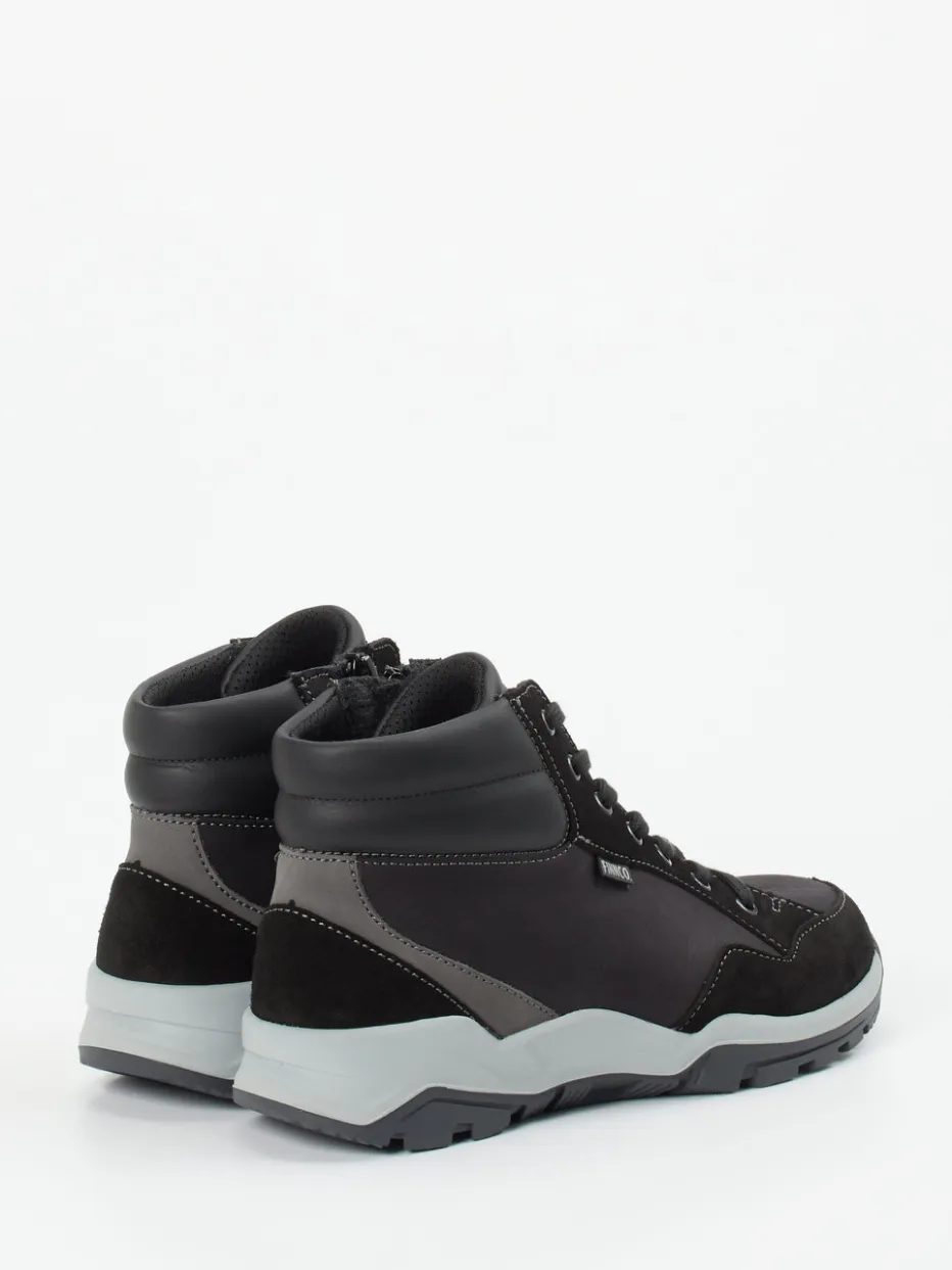Für aktiven Komfort bei jedem Wetter.Finn Comfort präsentiert mit dieser Schnürstiefelette ein knöchelhohes Modell für Outdoor und Alltag. Das robuste Nubukleder wird an ausgewählten Partien durch samtig-mattes Veloursleder ergänzt – kombiniert mit Textilfutter, synthetischen Besätzen und Kontrastnähten entsteht ein moderner Utility-Look in Tiefschwarz. Der gepolsterte Schaft und ein seitlicher Reißverschluss bieten Komfort beim Tragen und Anziehen. Die profilierte Gummisohle mit Shock Absorber sorgt für Halt auf wechselndem Terrain, ein herausnehmbares Korkfußbett ermöglicht individuelle Anpassung. Inspiriert von Gorpcore und Streetstyle, harmoniert der Look mit Freizeitjacke und Funktionshose. Ein funktionaler Wohlfühlschuh mit hochwertiger Ausstattung von Finn Comfort.