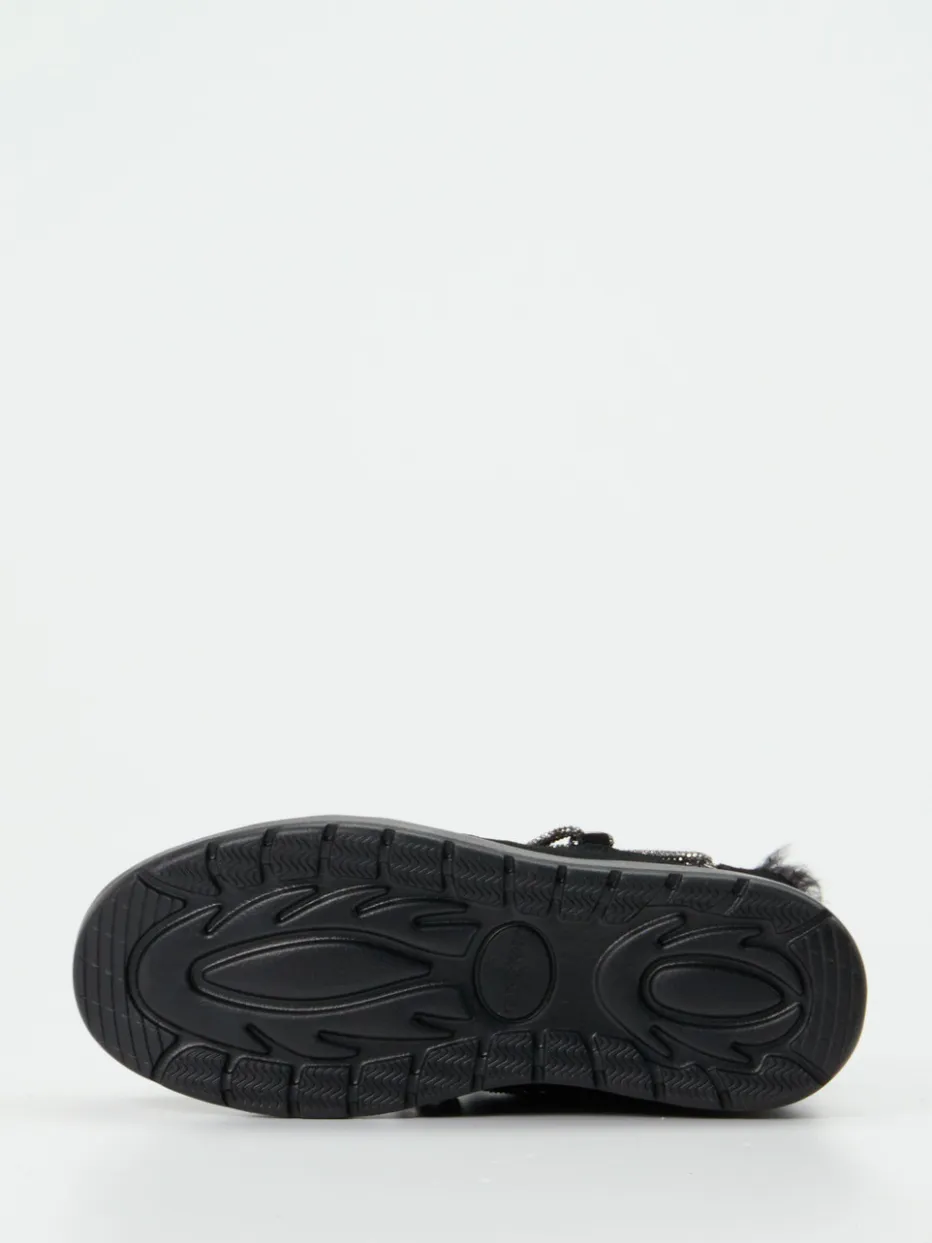 Winter-Style mit Utility-Charme.CAFèNOIR kreiert mit dieser Schnürstiefelette ein ausdrucksstarkes Damenmodell für die kalte Jahreszeit. Ideal geeignet für frostige City-Spaziergänge oder entspannte Alltagsszenarien, punktet der Schuh mit weichem Veloursleder in tiefem Schwarz – samtig angeschliffen – und dekorativer Schnürung mit anthrazitfarbenen Glanzdetails. Ein sichtbarer Kunstfellbesatz am Schaft sowie das warme Futter aus Textilfaser sichern ein kuscheliges Tragegefühl. Die kompakte Form mit rutschhemmender Gummiprofilsohle verleiht funktionale Stabilität, während die metallischen Ösen und das urbane Finish Trends wie „Winter Utility“ reflektieren. Optimal kombinierbar zu Thermoleggings und Oversize-Coat. CAFèNOIR verbindet modische Extravaganz mit wohldosierter Funktionalität.