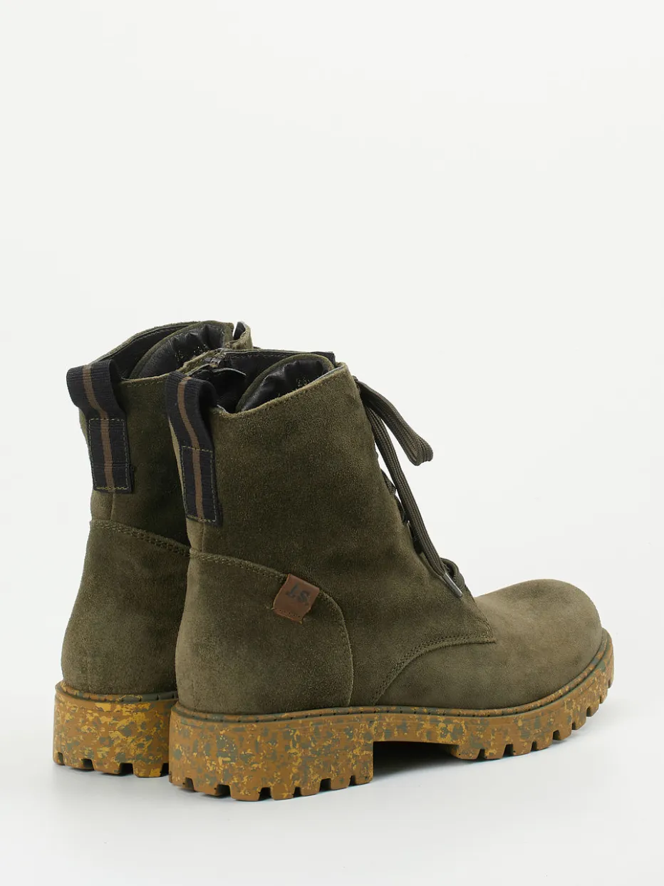 Für Stadt und Natur gemacht.Josef Seibel präsentiert eine Damen-Schnürstiefelette mit Outdoor-Charakter und urbanem Charme. Wenn Funktion auf Stil trifft: Diese hochgeschlossene Schnürstiefelette aus grünem Veloursleder zeigt sich mit matter Oberfläche und wird durch tonale Nähte sowie ein seitliches Markenpatch akzentuiert. Die Kombination aus Schnürung und Innenreißverschluss erleichtert den Einstieg, während die gesprenkelte Profilsohle aus Gummi starke Traktion bietet – optisch inspiriert vom Recycling-Trend. Warm gefüttert mit Microfaser, überzeugt sie als idealer Begleiter für Alltag und Herbstwanderung. Besonders stimmig zu khakifarbenen Jacken und Grobstrick. Verlässlich komfortabel mit hochwertiger Verarbeitung aus dem Hause Josef Seibel.
