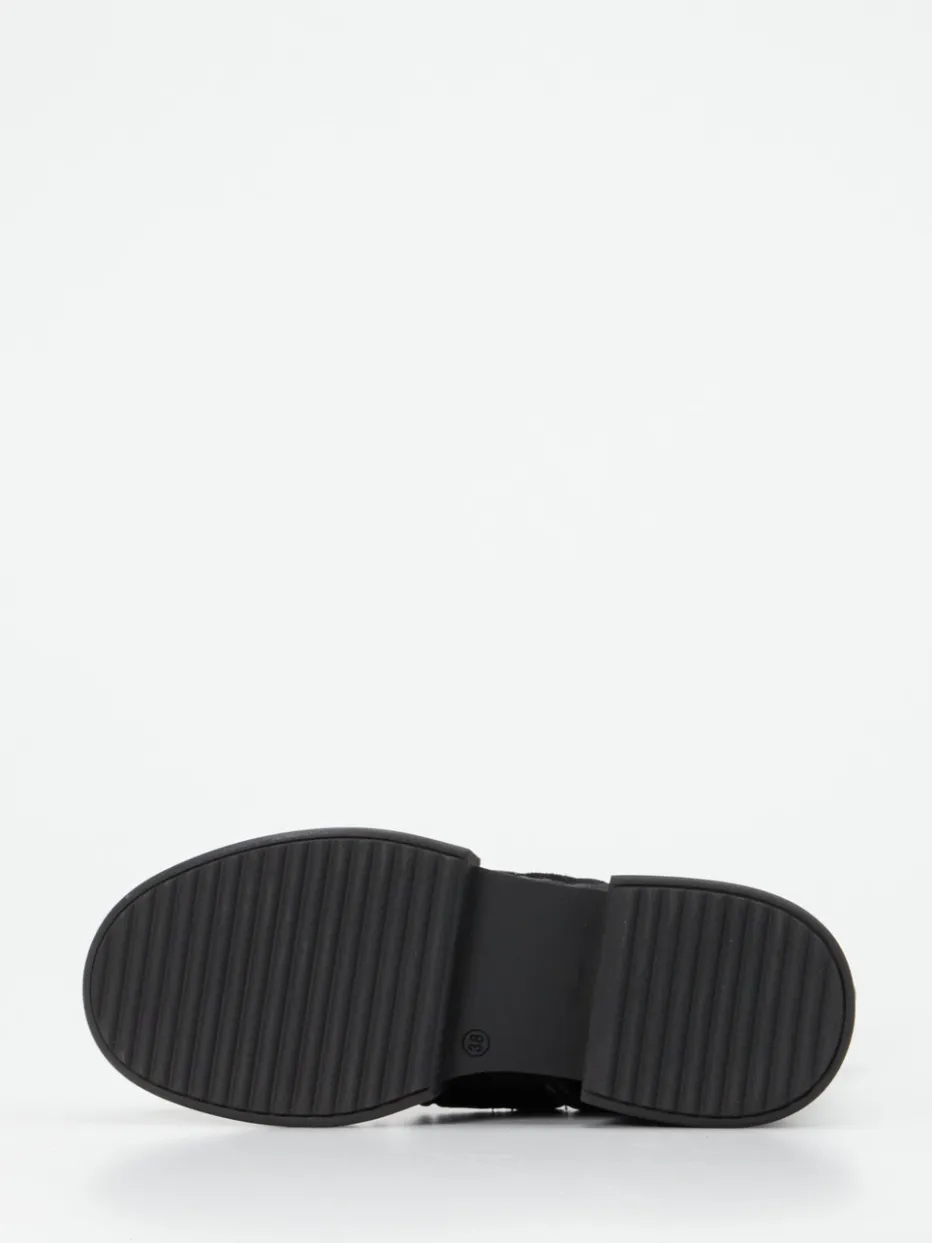 Patchwork trifft Metallic-Finish.Papucei bringt mit dieser Schnürstiefelette ein Fashion-Statement in die Streetwear-Kollektion. Ideal für urbane Looks im Alltag oder abends beim Ausgehen, kombiniert dieses Modell Veloursleder mit glänzenden Metallic-Elementen und genarbten Textilflächen zu einem spannenden Materialmix. Die schwarze Basisfarbe wird durch silberne Akzente in Patchwork-Optik akzentuiert. Schnürung und seitlicher Reißverschluss sorgen für Komfort und individuelle Passform, während die breite Gummisohle und der blockige Schaft einen robusten Auftritt garantieren. Inspiriert von aktuellen AW24-Trends zeigt sich das Design expressiv und modisch voraus. Besonders wirkungsvoll in Kombination mit Oversized-Mänteln und auffälligen Accessoires. Ein ungewöhnlicher Look mit markentypischem Charakter von Papucei.