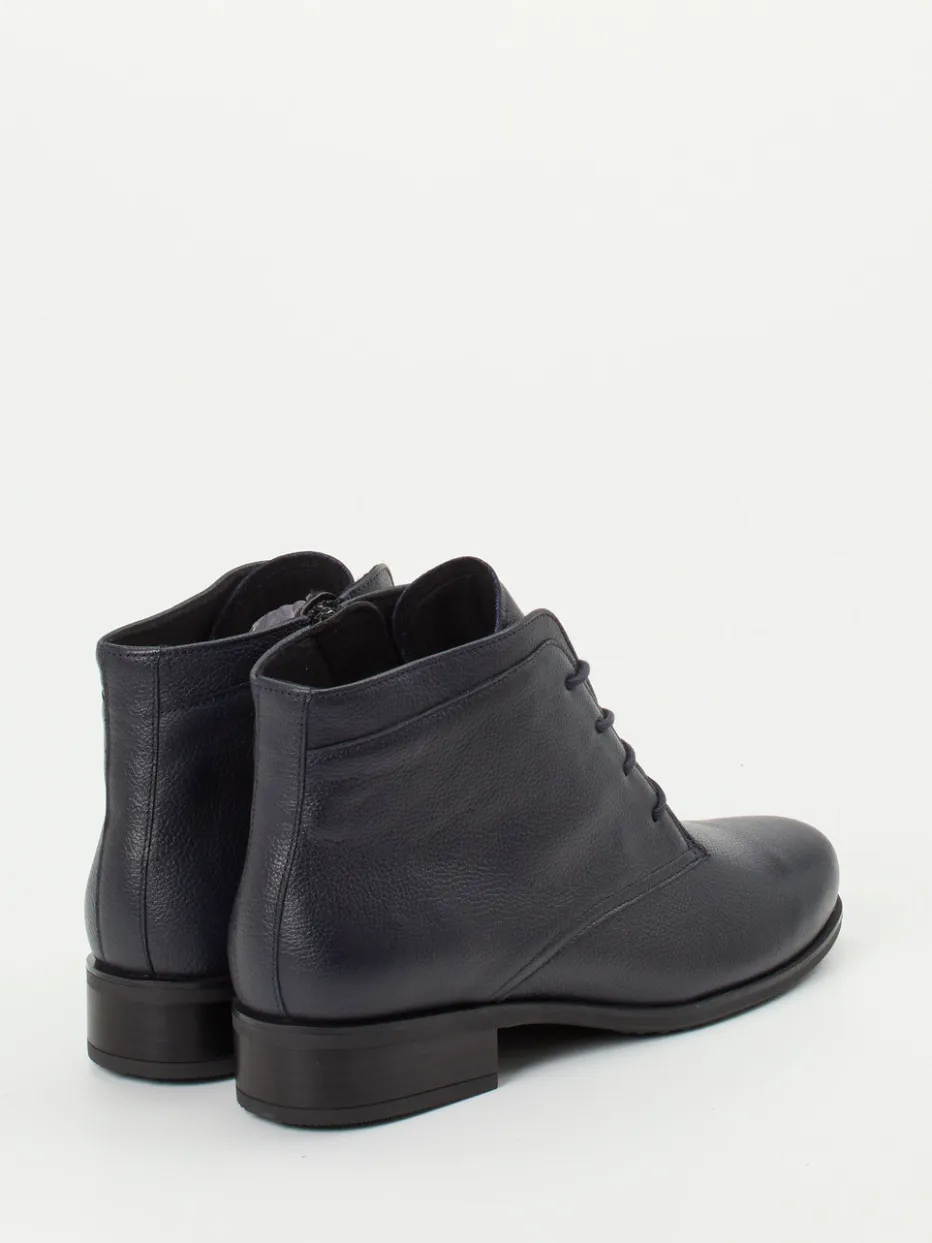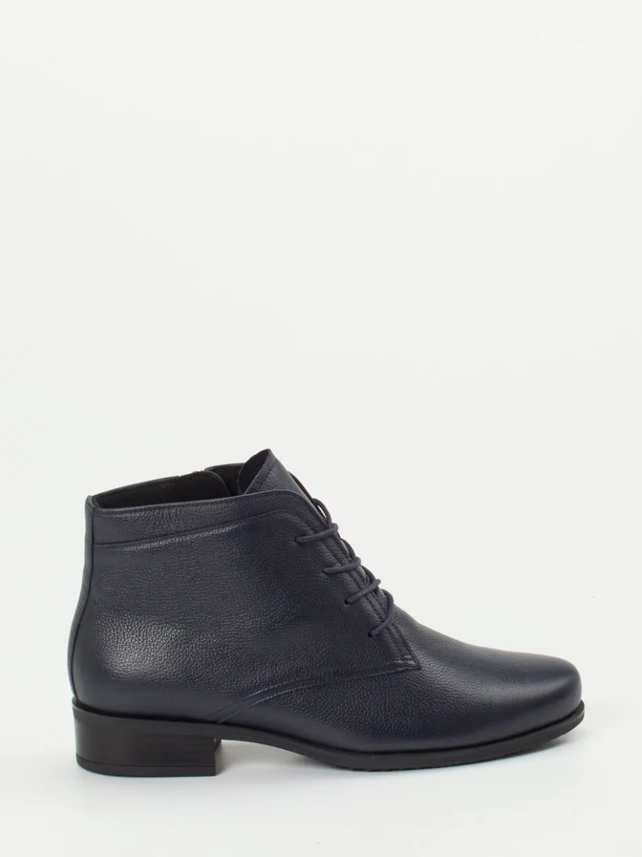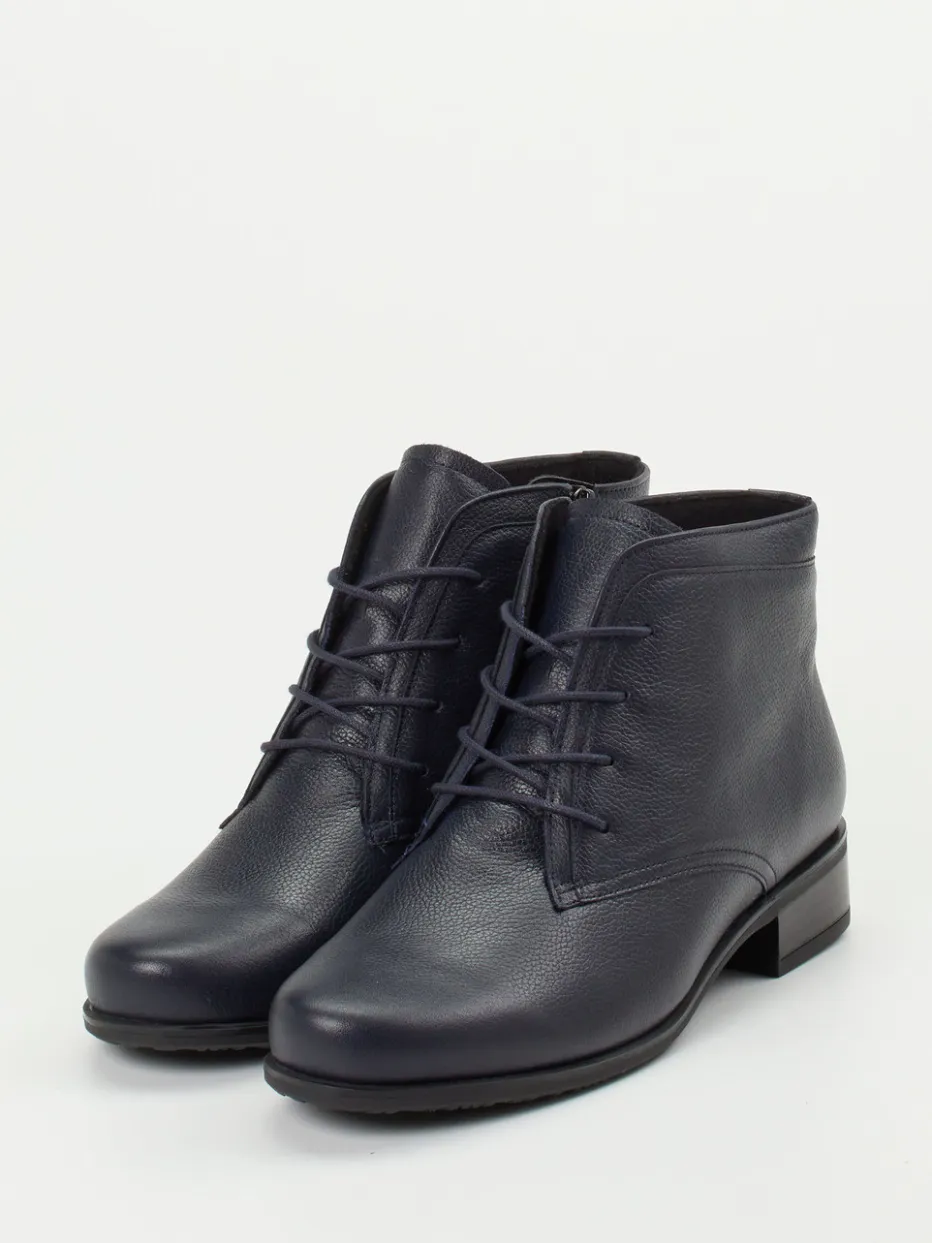 Eleganz trifft Komfort auf Schritt und Tritt.Semler präsentiert mit dieser Schnürstiefelette ein feminines Modell im klassischen Design. Für den vielseitigen Alltag zwischen Büro und Freizeit ist die dunkelblaue Stiefelette mit ihrem weichen, genarbten Kalbleder wie geschaffen. Die knöchelhohe, schmal zulaufende Silhouette harmoniert mit der Ton-in-Ton-Schnürung und dem dezenten Reißverschluss, der das An- und Ausziehen erleichtert. Die leichte Gummisohle mit rutschhemmendem Profil sorgt zusammen mit der Weite H und dem herausnehmbaren Fußbett für individuellen Komfort. Inspiriert vom „Quiet Luxury“-Trend lässt sich das Modell ideal zu Kaschmir oder feinen Wollstoffen kombinieren. Semler vereint feines Lederhandwerk mit ergonomischem Design für stilvolles Laufgefühl.