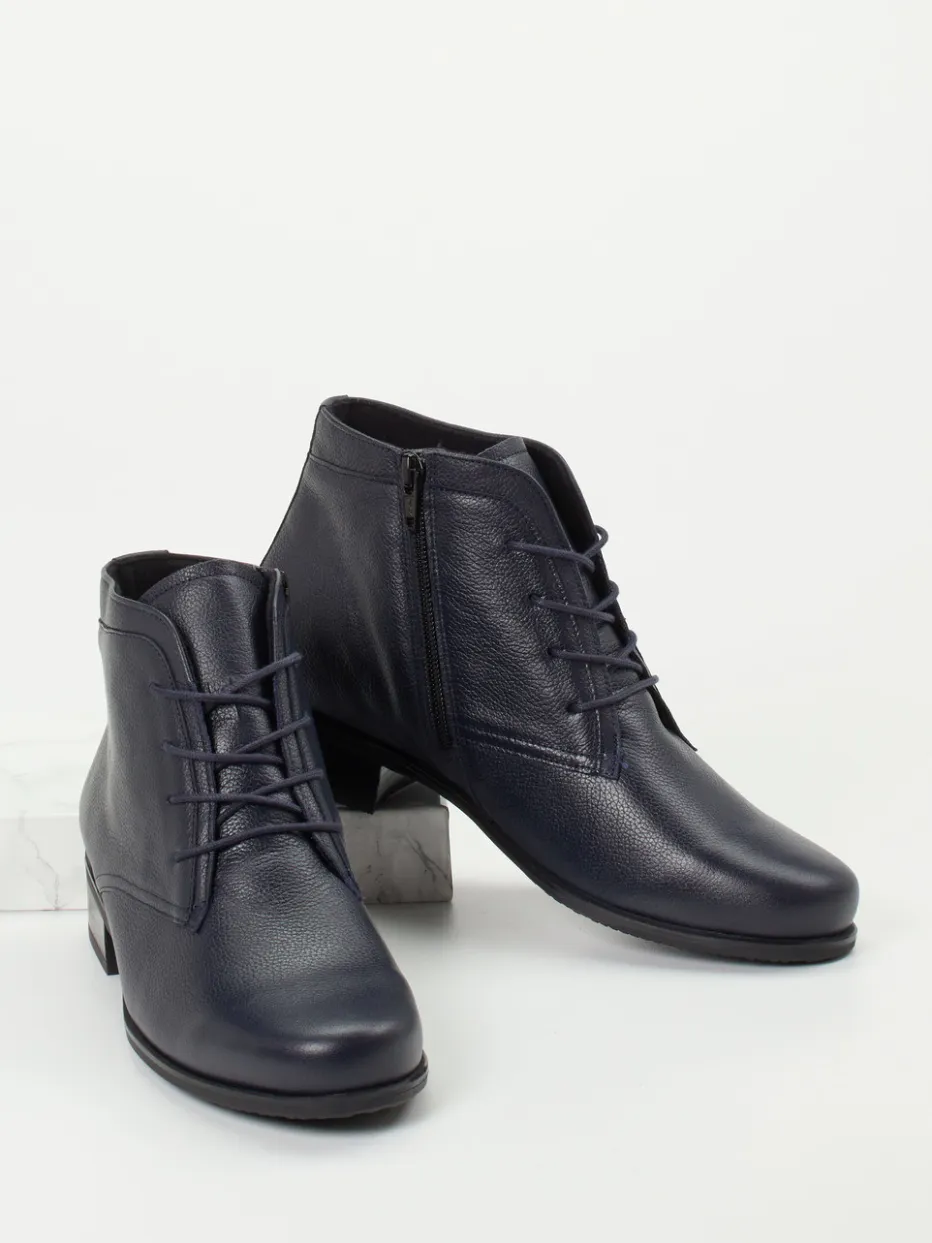 Die dunkelblaue Schnürstiefelette von Semler überzeugt mit genarbtem Kalbleder, hohem Tragekomfort und funktionalen Details wie Reißverschluss und Wechselfußbett – ideal für anspruchsvolle Alltagsmomente.
