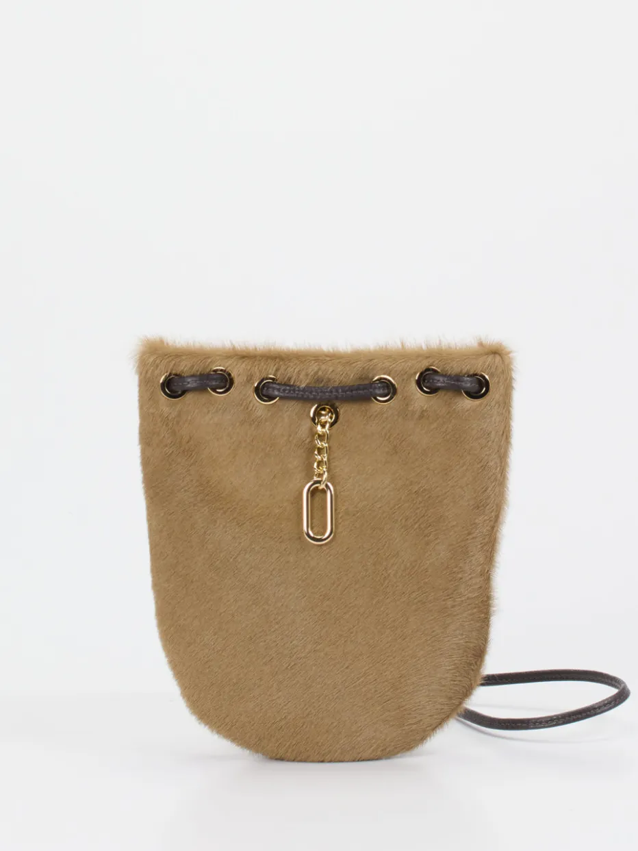 Diese kleine Umhängetasche der Marke Konstantin Starke mit weichem Kunstfell in sattem Hellbraun vereint Extravaganz und Alltagstauglichkeit auf elegante Weise. Der Beutelstil wird durch goldfarbene Ösen und ein zentrales Schmuckelement stilvoll akzentuiert. Die kompakte Form bietet Platz für das Wesentliche und lässt sich dank des schmalen Trageriemens bequem über der Schulter oder diagonal tragen. Der edle Materialmix aus flauschiger Oberfläche und metallischen Details schafft ein raffiniertes Spiel aus Textur und Glanz. – Maße: 18 x 18 x 3 cm – Verschluss: Druckknopf Zur Pflege das Kunstfell regelmäßig mit einer weichen Bürste oder einem trockenen Tuch auffrischen. Direkte Hitze und starke Reibung vermeiden, um die Struktur des Materials langfristig zu erhalten.