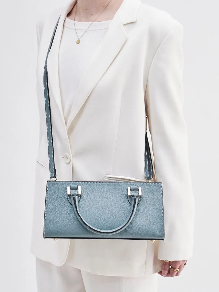 Strukturiertes Kalbleder, goldfarbene Details und klare Silhouette verleihen diesem Modell einen modernen, reduzierten Charakter mit hochwertiger Anmutung.