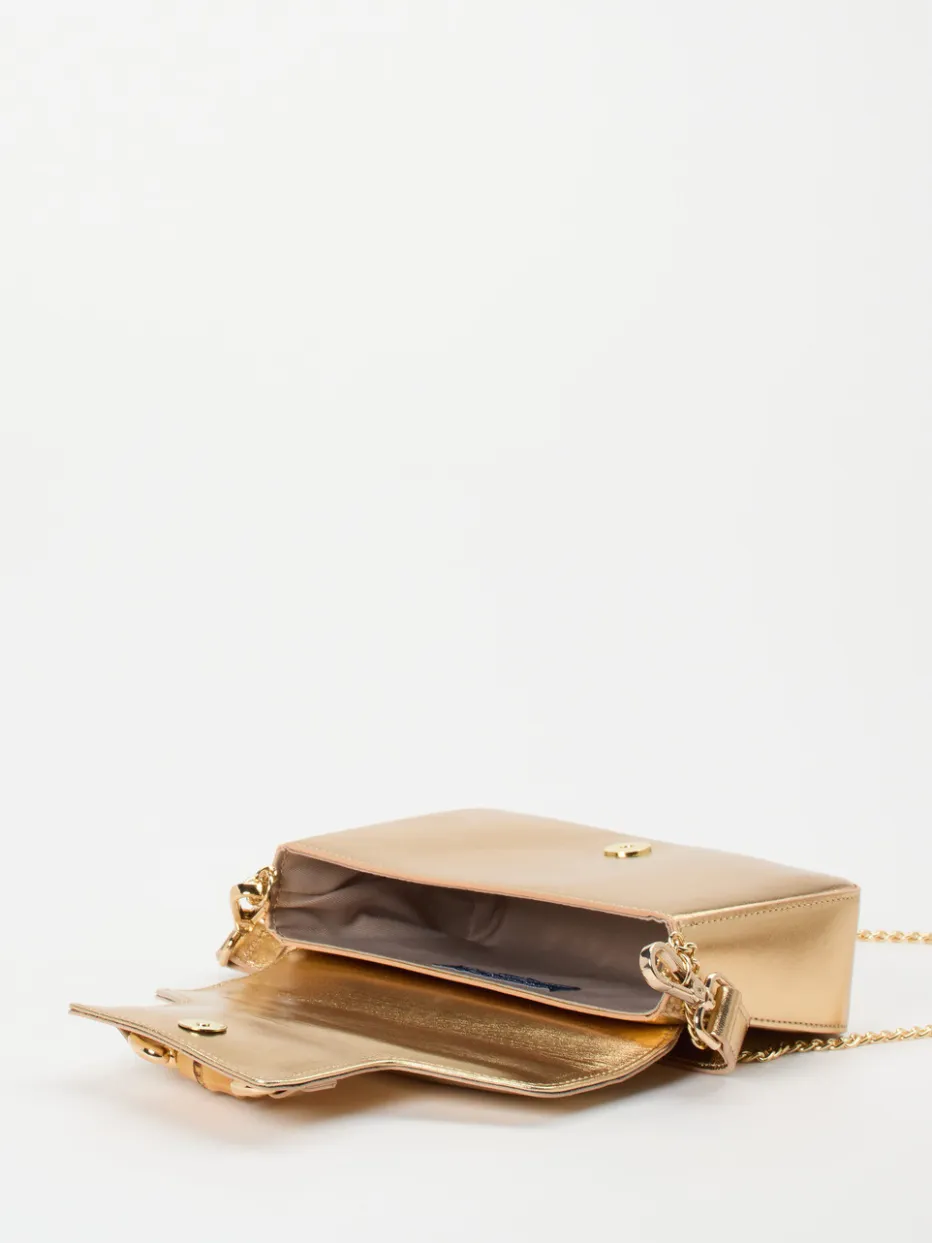 Diese Mini Bag von Konstantin Starke kombiniert edlen Metallicglanz mit einem stilvollen Bambusdetail – ein elegantes Accessoire mit subtiler Vintage-Note.