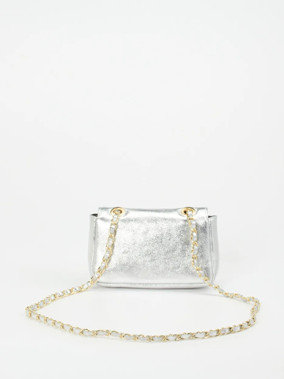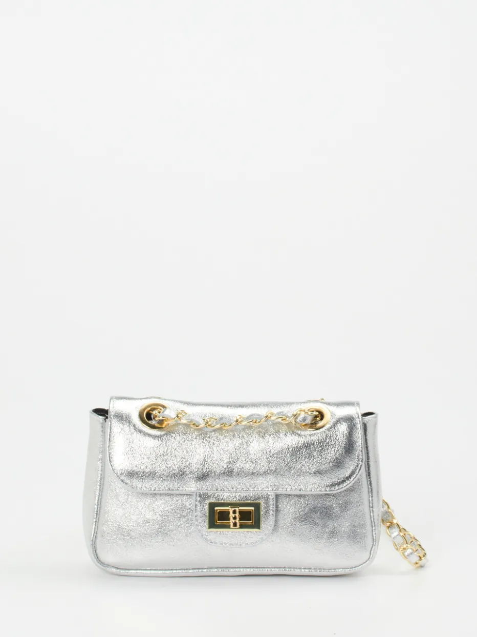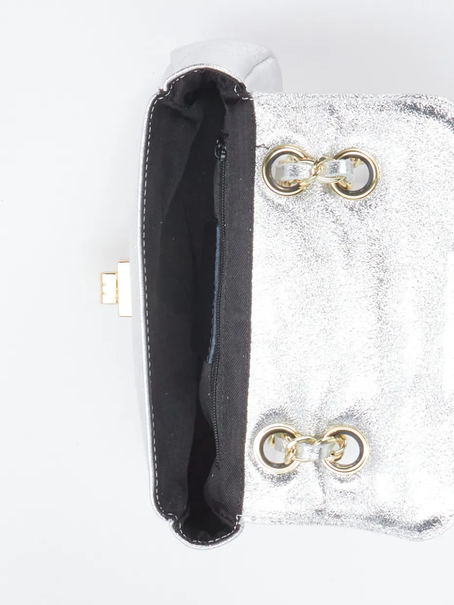 Metallic-Look und goldfarbene Kettenelemente verleihen dieser Mini-Bag von Marlon Firenze stilvolle Präsenz für festliche Anlässe im Rahmen aktueller Glamour-Trends.