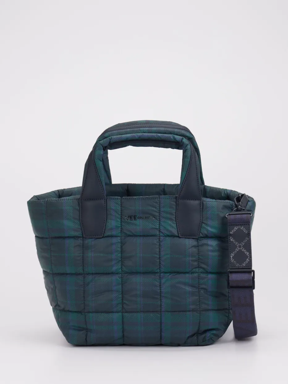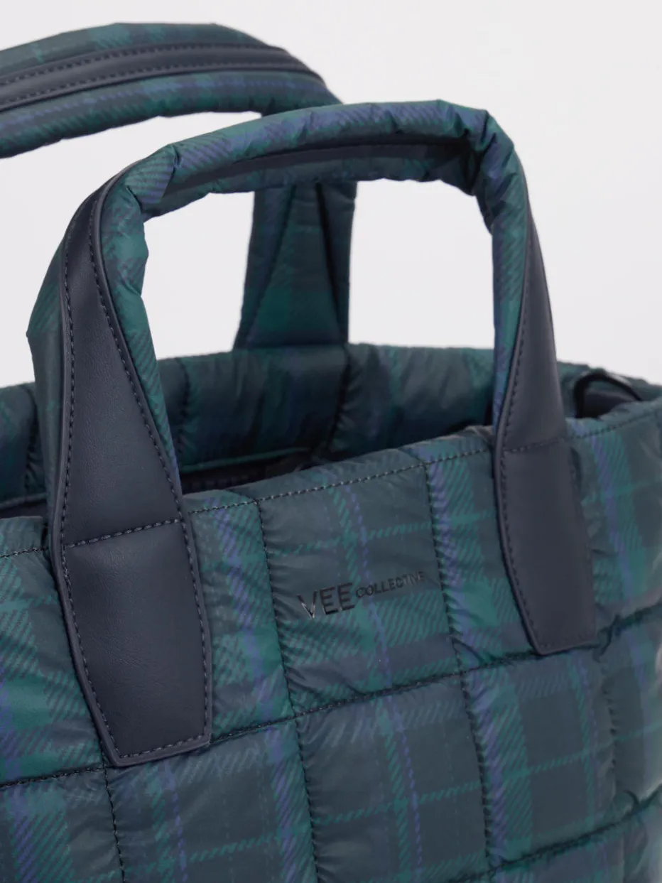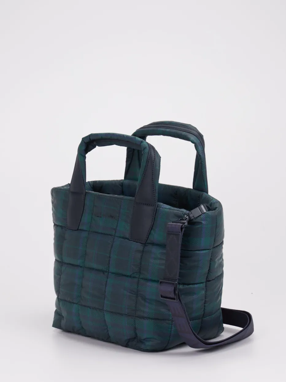 Der gesteppte Shopper aus Nylon kombiniert ein modernes Tartan-Muster mit praktischen Details und überzeugt durch stilvolle Funktionalität für den urbanen Alltag.