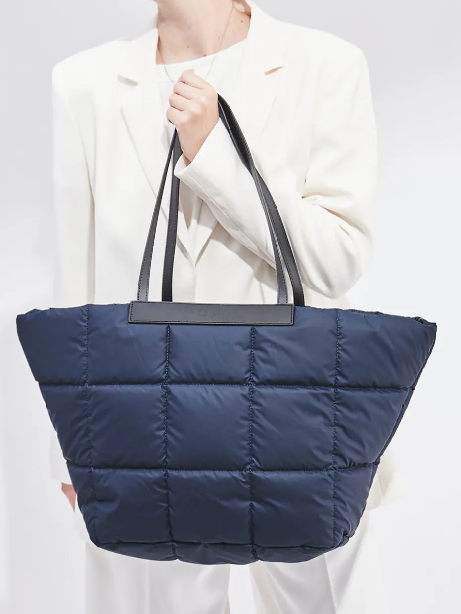 Dieser gesteppte Shopper aus recyceltem Ripstop-Nylon überzeugt durch seine Leichtigkeit, urbane Formensprache und maximale Alltagstauglichkeit – ideal für moderne Vielseitigkeit.