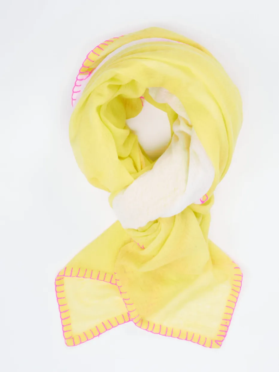 Dieser attraktive Schal aus dem Hause Chashmere Couture by Simone Bruns bringt einen Hauch Luxus in Ihren Kleiderschrank. Gefertigt aus feinstem Kaschmir, verspricht das Material absolutes Wohlfühlen. Die Farbgebung in einem frischen Gelb und Weiß wird durch pinke Nähte akzentuiert. Ein Kleidungsstück, das jedes Outfit veredelt! – Material: 100% Kaschmir – Farbe: Gelb/ Weiß/ Pink – Größe: 140 cm x 200 cm – Pflegehinweis: Wollwaschgang max. 30°C mit speziellem Flüssigwollwaschmittel, eventuelle Knötchenbildung kann mit Cashmere-Kamm wieder ausgekämmt werden