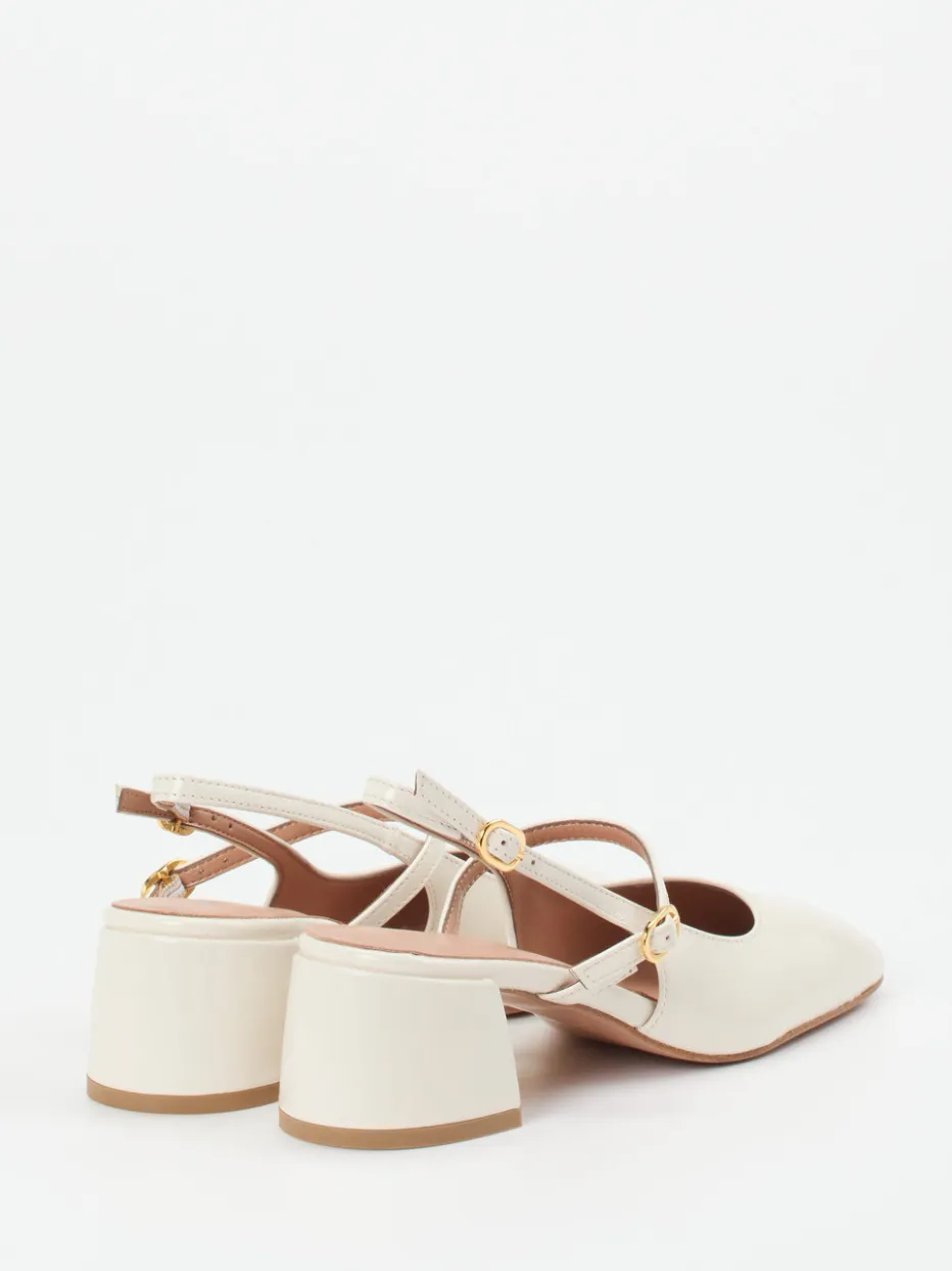 Die Slingback-Mary-Janes kombinieren die glänzende Eleganz von Lackleder mit einem femininen Retro-Charme. Eine stilvolle Wahl für sommerliche Anlässe und moderne Business-Looks.