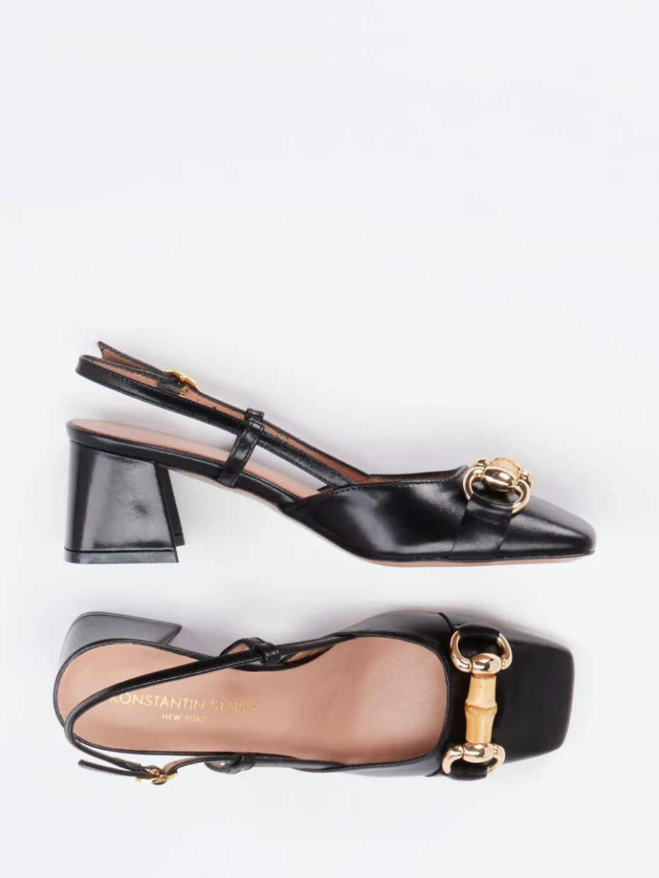 Die Slingpumps von Konstantin Starke vereinen edles Kalbleder, einen femininen Schnitt und ein stilvolles Bambus-Detail zu einem souveränen Auftritt mit Understatement.