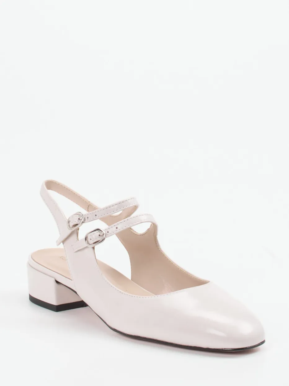 Moderner Vintage-Charme trifft auf feminine Zurückhaltung: Diese Lackleder-Slingpumps vereinen Mary-Jane-Elemente mit einem eleganten Minimalismus.