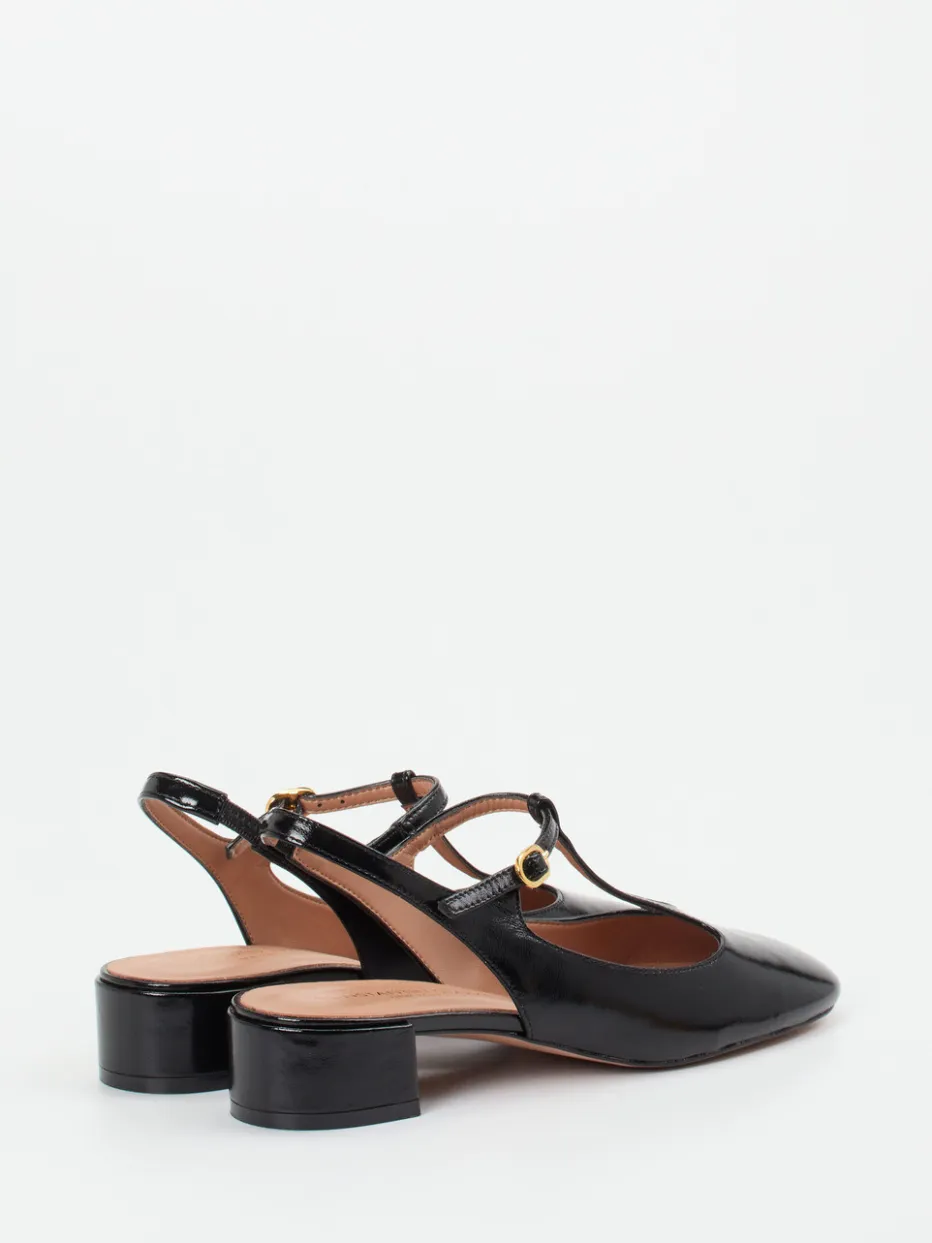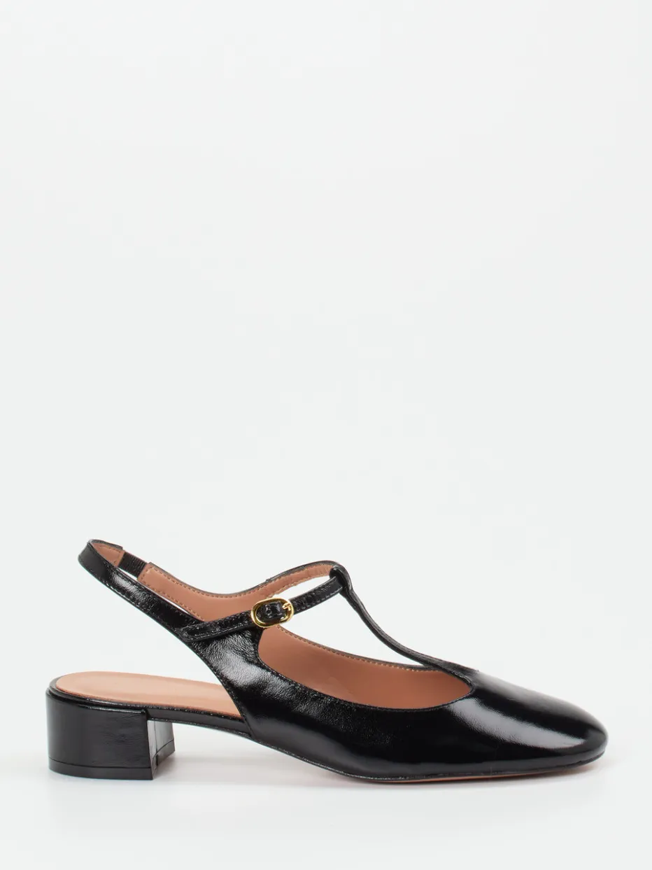 Der glänzende Look trifft auf Retro-Eleganz: Diese Slingpumps vereinen hochwertigen Komfort mit einem femininen Design im Stil der 50er-Jahre.