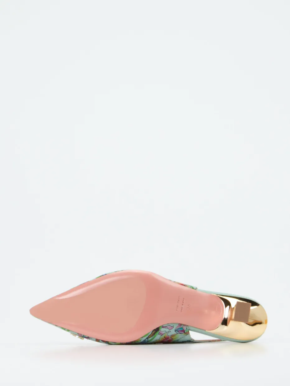 Romantisches Statement in Frühlingsfarben.Konstantin Starke interpretiert die klassische Slingback-Form neu – in eleganter Satin-Optik. Ein Schuh für besondere Anlässe: Das fein glänzende Textilmaterial mit floralem Print und hellblauen Herz-Strassdetails bringt frische Eleganz ins Outfit. Der spitze Leistenverlauf, der verstellbare Fersenriemen und ein goldfarbener Kitten Heel formen eine feminine Silhouette voller Charakter. Innen sorgt weiches Ziegenleder für angenehmen Komfort. Als Kombination harmonieren pastellfarbene Clutches oder feiner Goldschmuck. Die Liebe zum Design zeigt sich in jedem Detail – Konstantin Starke steht für stilsichere Akzente mit hohem Anspruch.