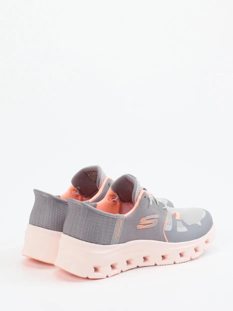Sportlich durch den Alltag.Skechers präsentiert einen komfortbetonten Slip-in-Sneaker für Damen. Ob beim Stadtbummel oder nach dem Workout – dieser Sneaker punktet mit flexibler Passform, atmungsaktivem Mesh und einer elastischen Fersenkappe. Das strukturierte Textil trifft auf ein zartes Farbspiel aus Rosé-Beige, Apricot und Mittelgrau, ergänzt durch Ton-in-Ton-Logos und farblich abgesetzte Ösen. Die ausgeformte Glide-Step-Sohle aus Gummi sorgt für optimale Dämpfung und ein sportlich-dynamisches Laufgefühl. Streetwear-inspiriert fügt sich das Modell perfekt in Soft-Pastel- und Athleisure-Looks ein. Das Air-Cooled-Memory-Foam-Fußbett rundet den Tragekomfort markentypisch ab.