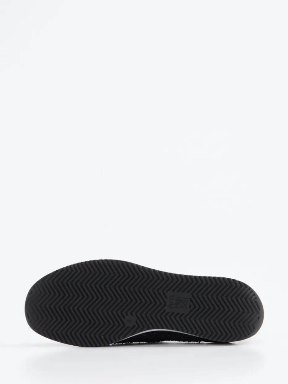 Der bequeme Schlupfschuh bietet dank elastischem Stretchmaterial, gestrickter Oberfläche und High-Soft-Fußbett maximalen Komfort. Die weiße PU-Kontrastsohle harmoniert elegant mit der filigranen Glitzerstruktur. Mit abgerundeter Silhouette, praktischer Zuglasche und minimalistischem Design ist er ideal für relaxte Alltagsmomente – zuhause oder unterwegs. Der Look trifft den Quiet-Luxury-Trend und lässt sich perfekt zu schwarzen Leggings oder einer Steppjacke kombinieren.