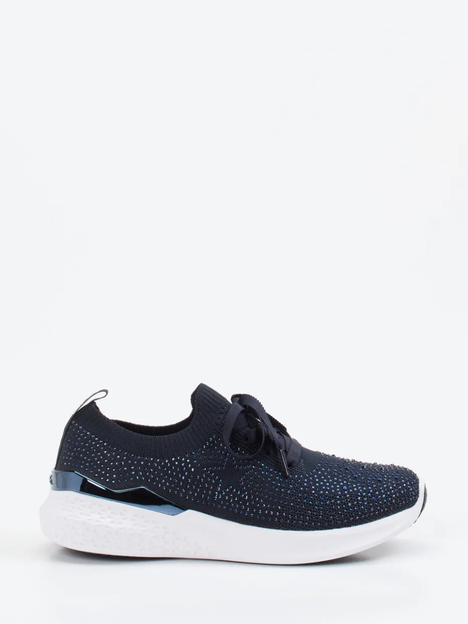 Glanzvoller Komfort für entspannte Tage.Ara präsentiert mit diesem Slip-On Sneaker ein leichtes und modernes Modell für Damen. Ideal für Freizeitmomente mit modischem Anspruch: Das feine Stretchtextil in Dunkelblau wird ergänzt durch eine ergonomische Silhouette und glänzend platzierte Strassdetails. Ein elastischer Sockenschaft, Zuglasche und satinierte Zierschnürung erleichtern den Einstieg. Die weiße Gummisohle mit dezenter Keilform sorgt für gedämpften Auftritt und greift den aktuellen Athleisure-Trend auf. Glitzernde Designelemente und Metallic-Details an der Ferse setzen feminine Akzente. Harmonisch zu soften Hosen oder monochromen Looks kombinierbar. Höchster Gehkomfort dank Ara High Soft Technologie.