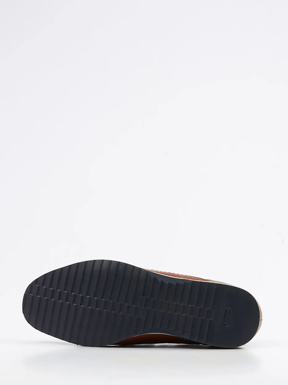 Stilvoll durch Büro und Alltag.Der braune Slipper von Sioux eignet sich ideal für Business-Settings oder gepflegte Freizeitlooks. Gefertigt aus feinem Kalbleder mit glänzender Oberfläche, bietet das Modell dank seitlich verdeckter Elastikeinsätze und herausnehmbarem Fußbett angenehmen Tragekomfort. Die klassisch flache Silhouette wird durch eine Porosohle mit dezenten Kontraststreifen und einen dunkelblauen Fersenbesatz ergänzt. Ziernähte entlang des Frontbereichs sowie die klare Linienführung sprechen für reduziertes Design im Sinne des „Quiet Luxury“-Trends. Trägt sich besonders gut zu Chinos oder unstrukturierten Blazern. Ein souveräner Begleiter mit gehobener Zurückhaltung – typisch Sioux.