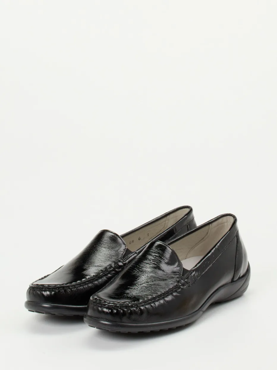 Dieser bequeme Komfort-Loafer kombiniert glänzendes Lackleder mit ergonomischer Ergonomie und rutschhemmender Flexibilität – modern interpretiert im Stil „Quiet Luxury“.